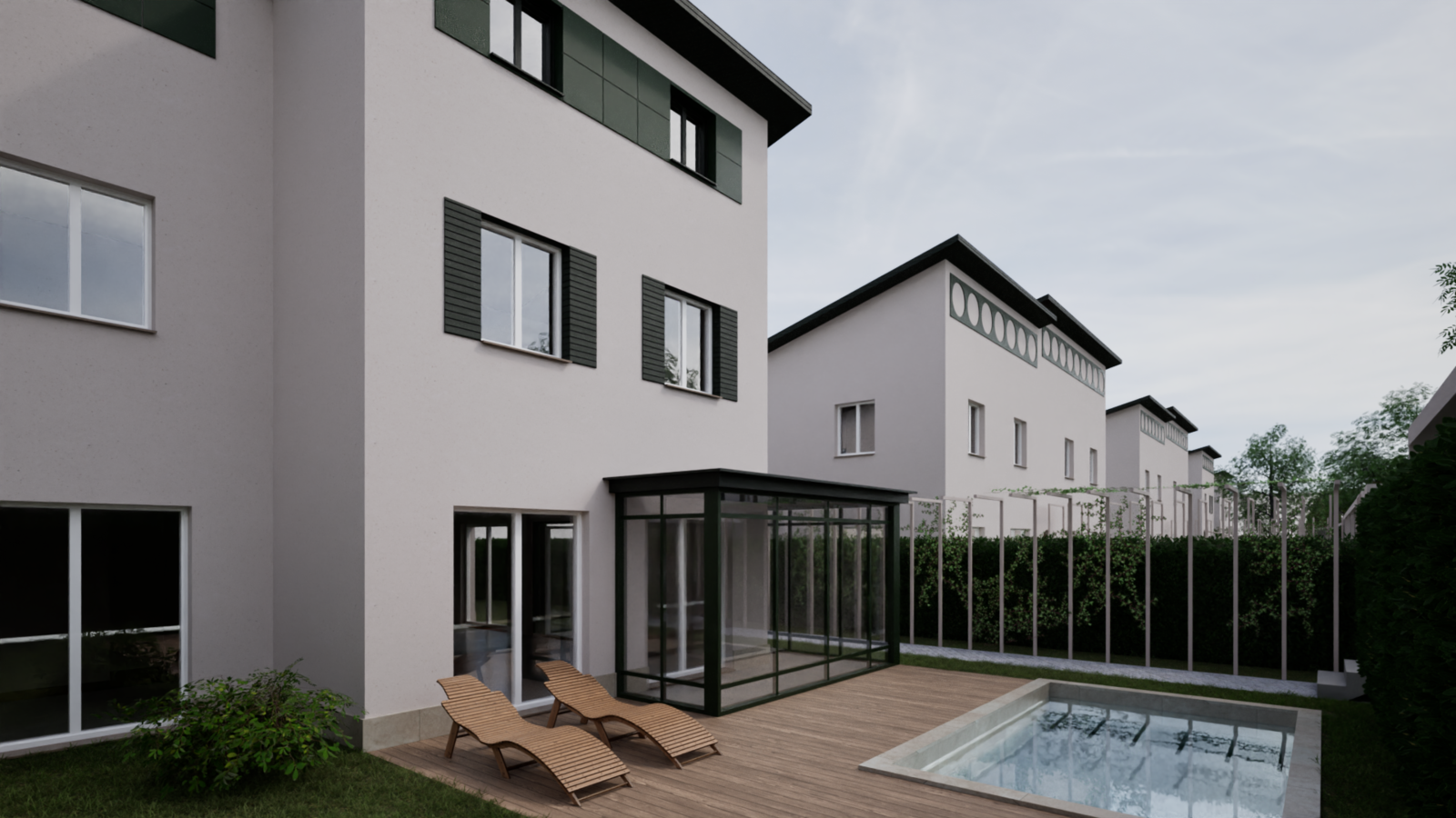Návrh a uspořádání jednotlivých domů vytváři pocit rezidenčního bydlení. Samotná dispozice pracuje s optimální velikostí jednotek, kde jsou minimalizovány komunikační plochy, jejichž nadměrné metry jsou využity pro užitné prostory.