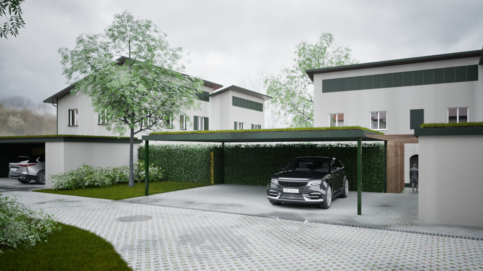 Objekt SO.04-6: 4 jednotky (3x 3+kk, 1x 4+kk) rozložené v 1.NP a 2.NP. Každá jednotka má vlastní parkovací stání, skladovací kóji a zahradu.