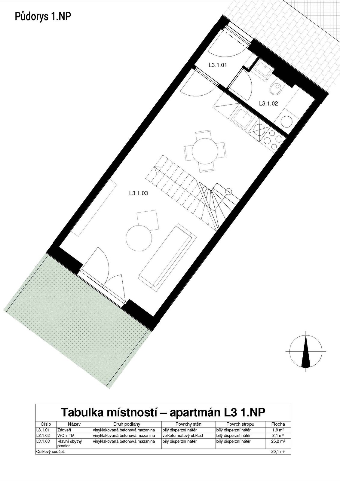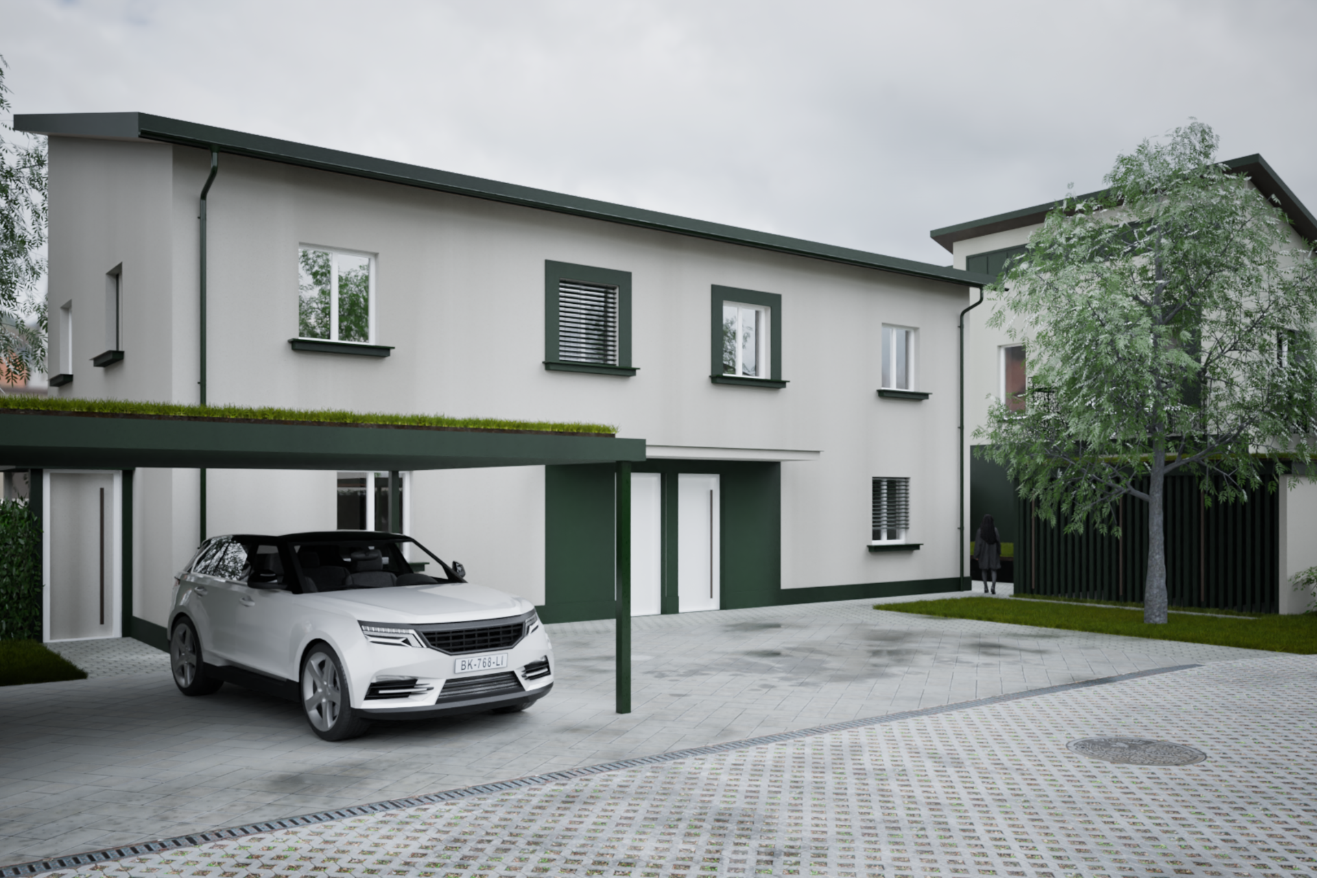 Objekt SO.04 -1: 4 jednotky (3x 3+kk, 1x 3+1) rozložené v 1.NP a 2.NP. Každá jednotka má vlastní parkovací stání, skladovací kóji a zahradu