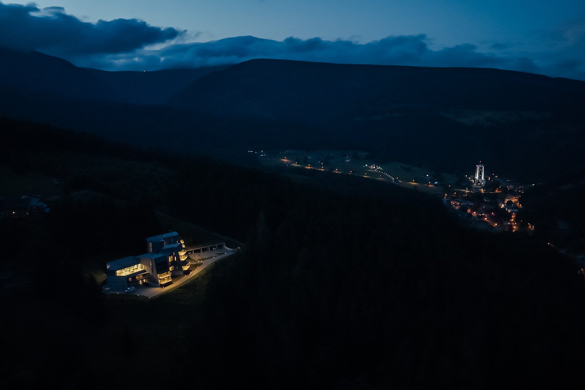 Klíčovým pilířem projektu byl maximální ohled na nejpřísnější kritéria Krkonošského národního parku (KRNAP). Prostřednictvím minimalizace zpevněných ploch, citlivým zapuštěním parkovacího přístřešku do terénu se zelenou střechou a funkčním omezením počtu jednotek. Snížení původně velkokapacitního hotelu na 11 velkoplošných apartmánů a 6 hotelových pokojů významně snižuje provozní zátěž oblasti a chrání ekosystém KRNAP.