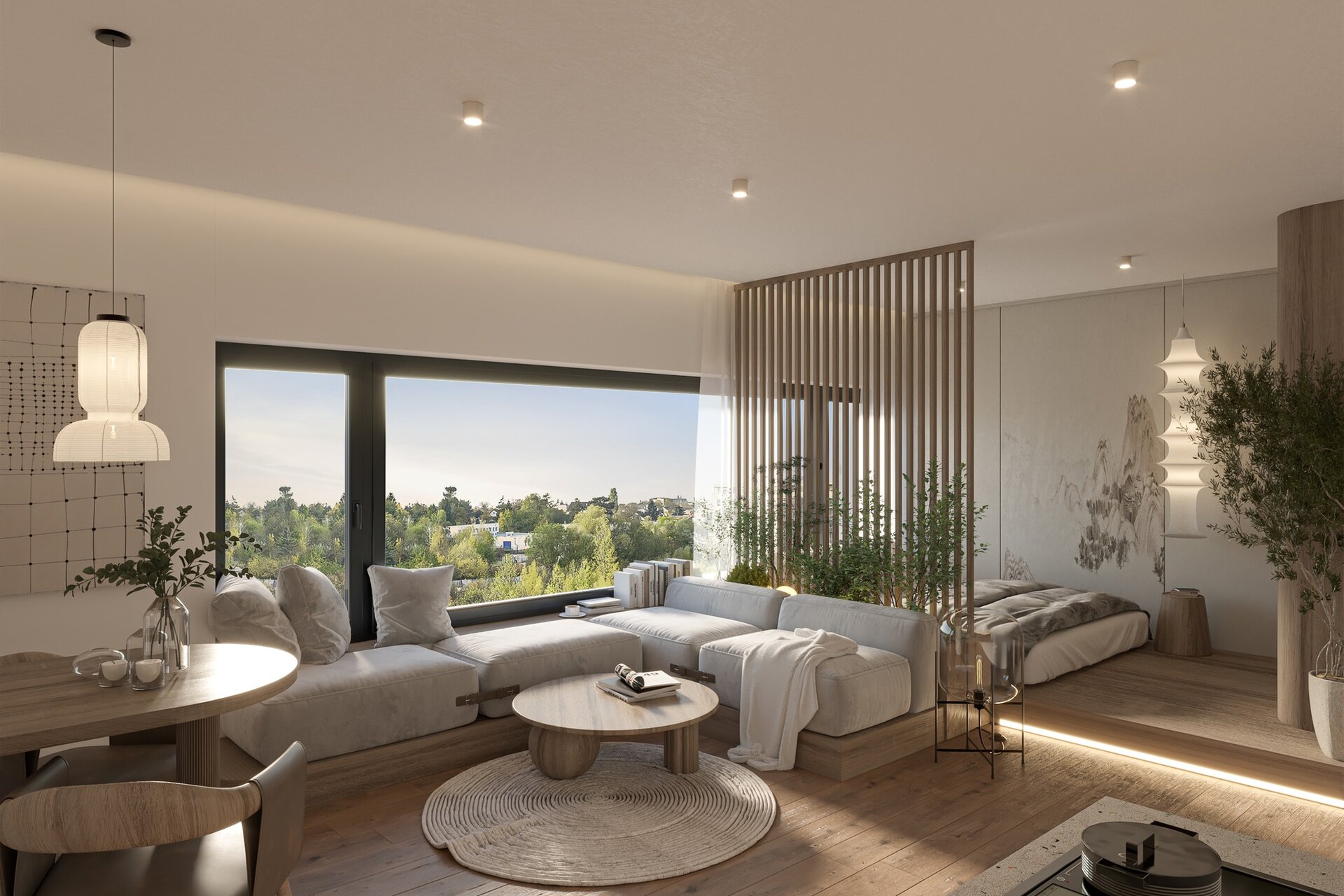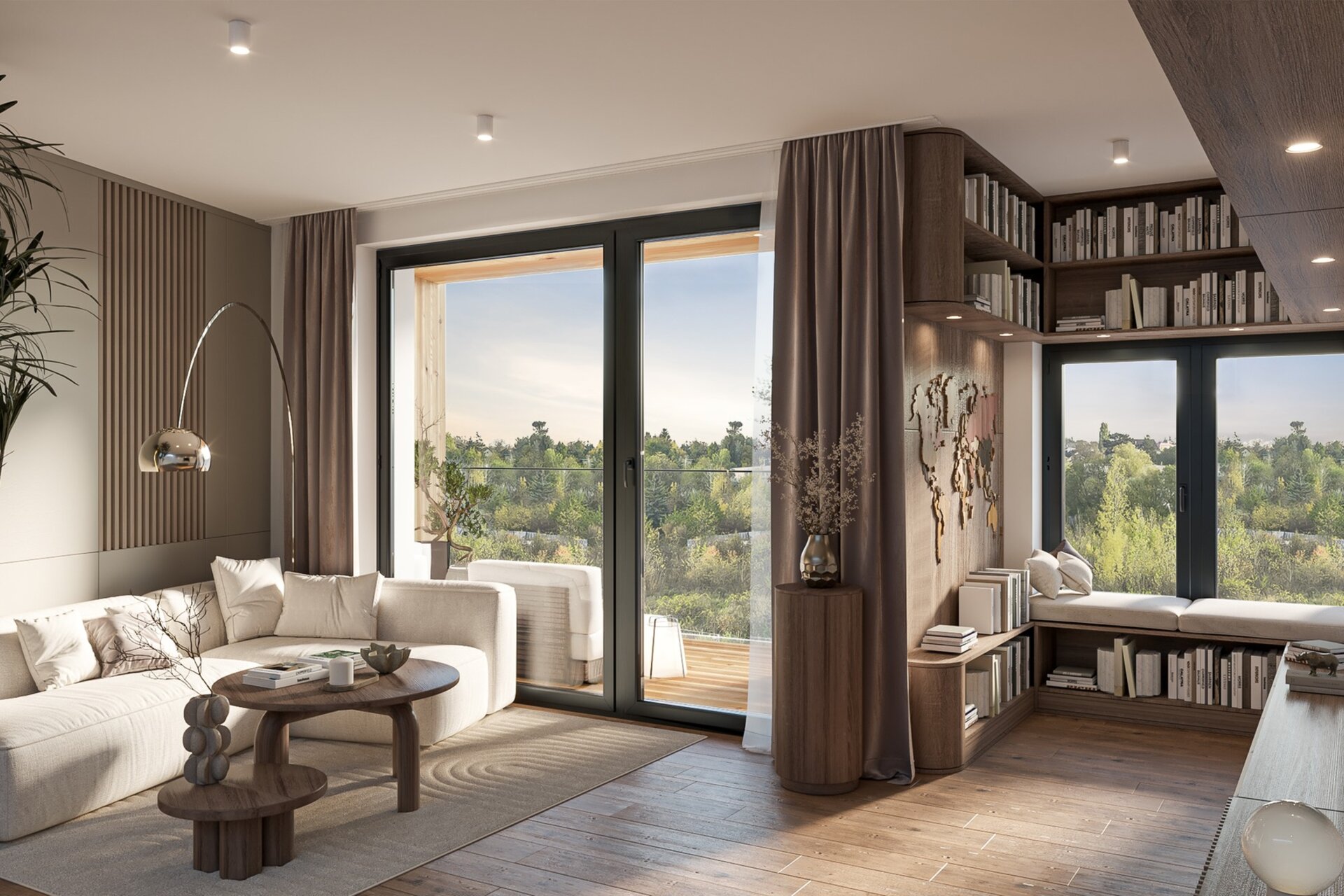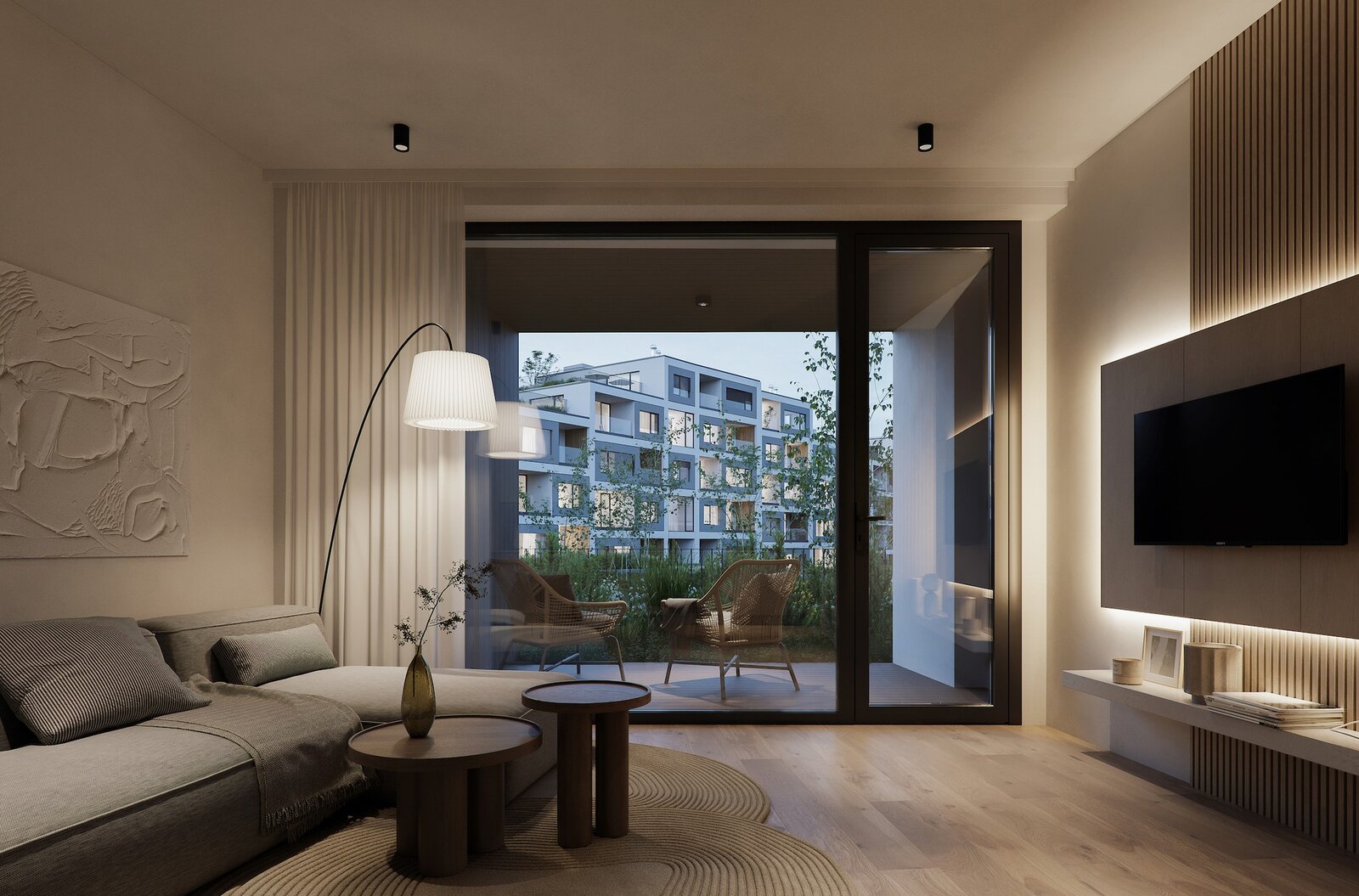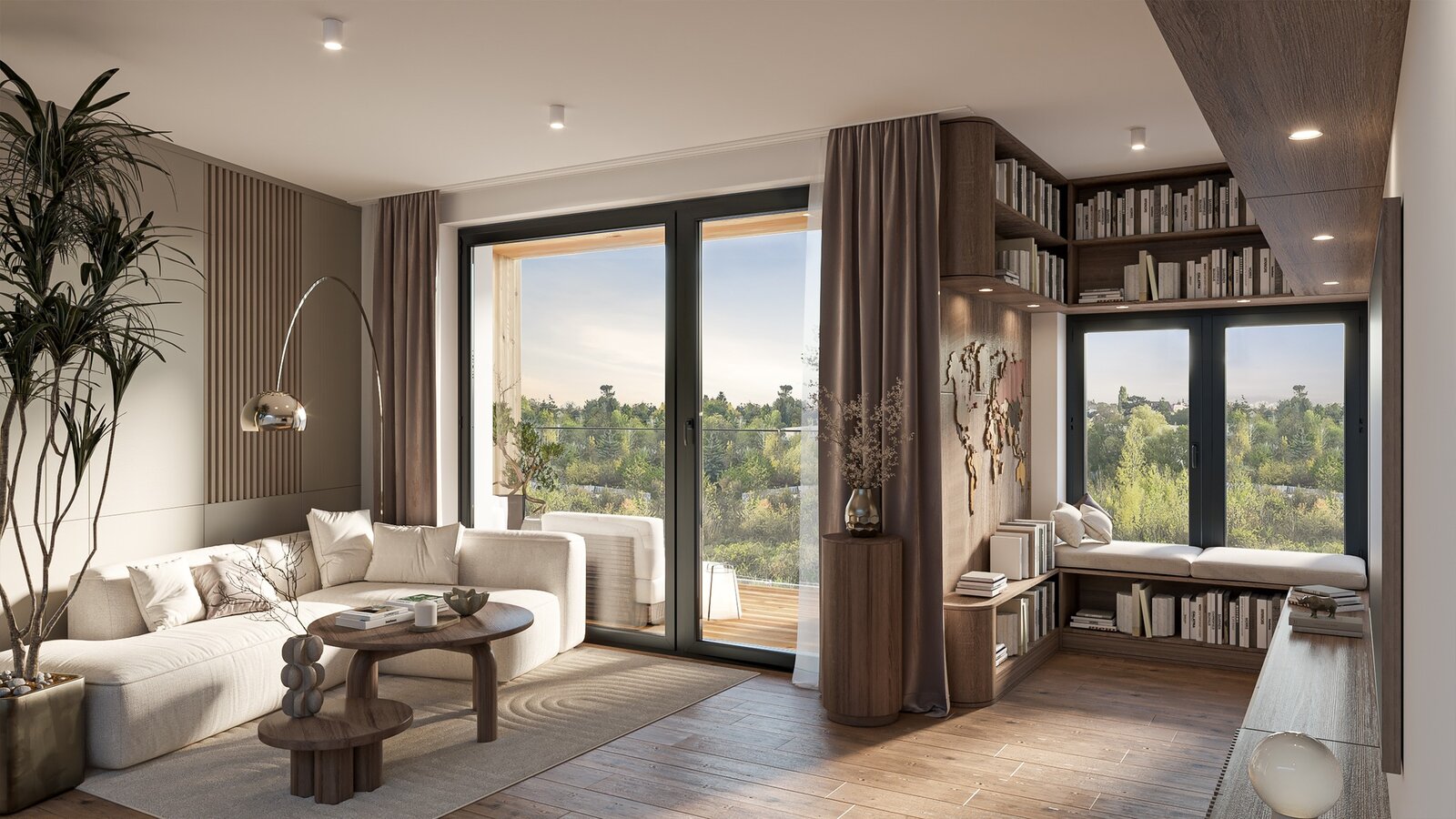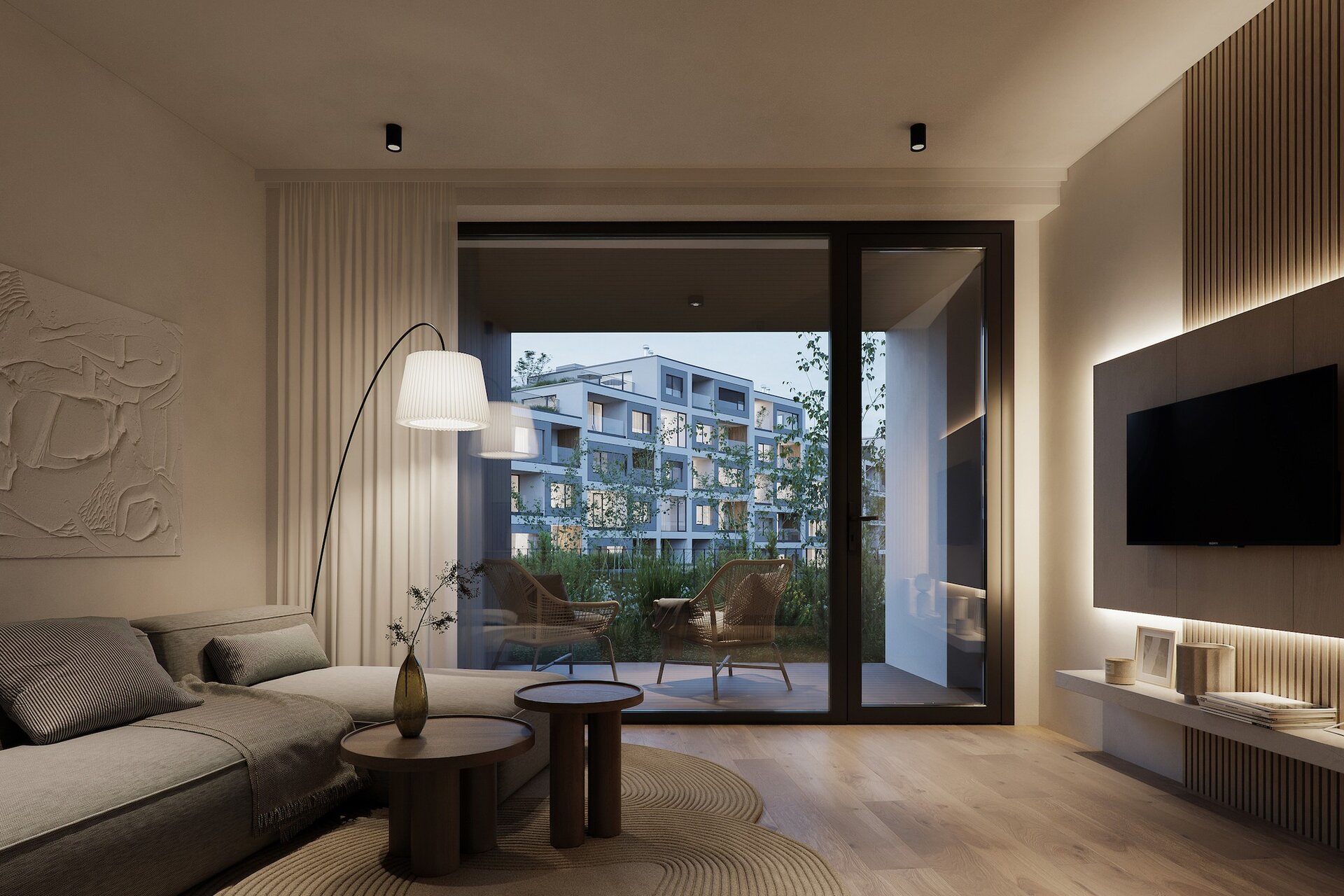 Samozřejmou součástí jsou přírodní dřevěné podlahy, designové koupelny v mimořádné kvalitě a s funkčními výklenky, prostorné sprchové kouty walk-in, venkovní stínění pro tepelnou pohodu v interiéru, moderní technologie, sklepy a parkovací stání v podzemních garážích s možností dobíjecích stanic pro elektromobily.