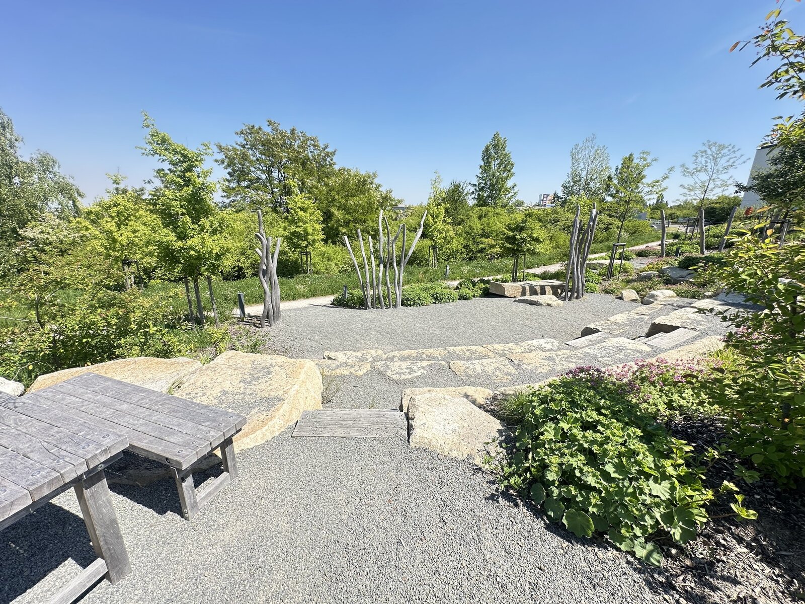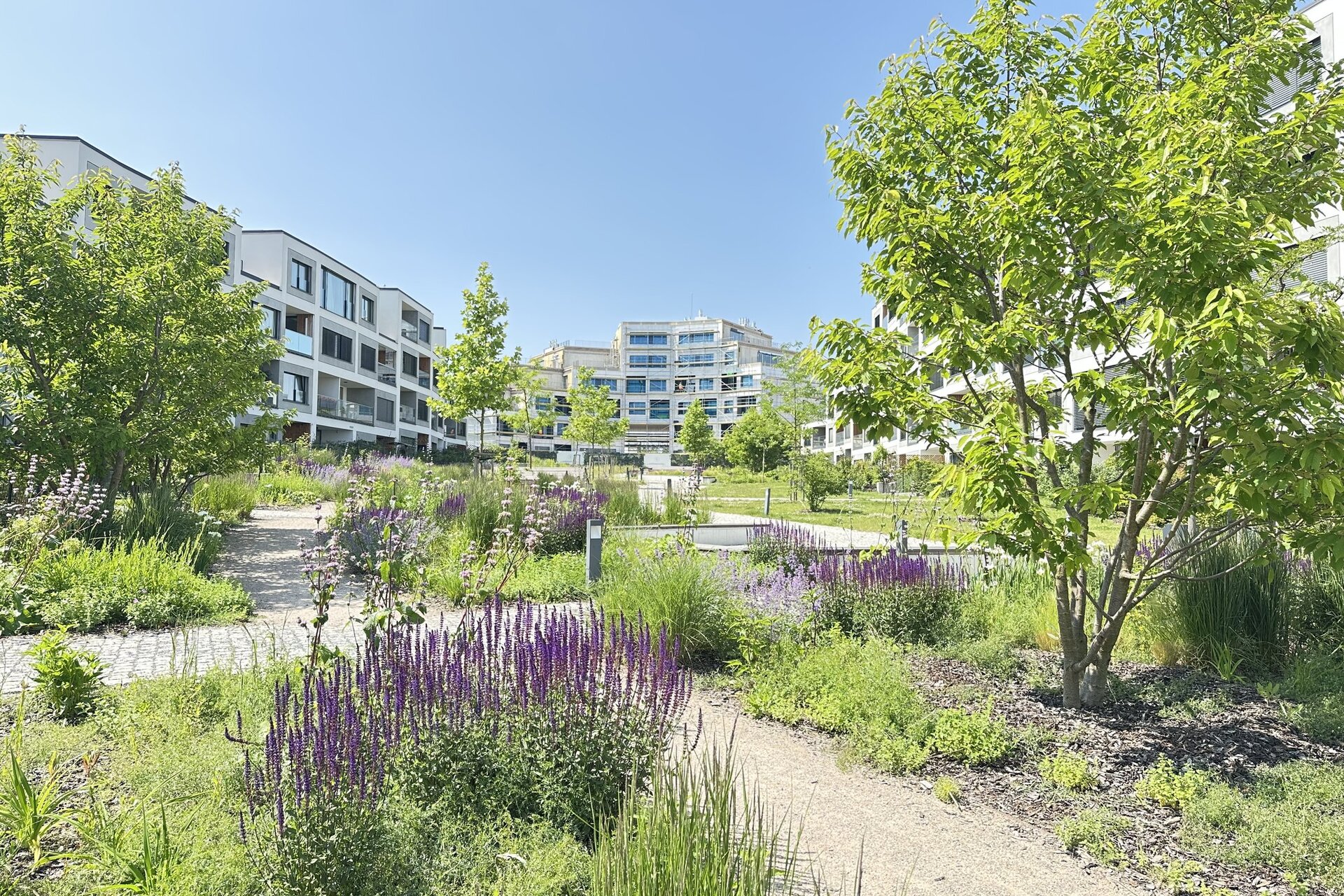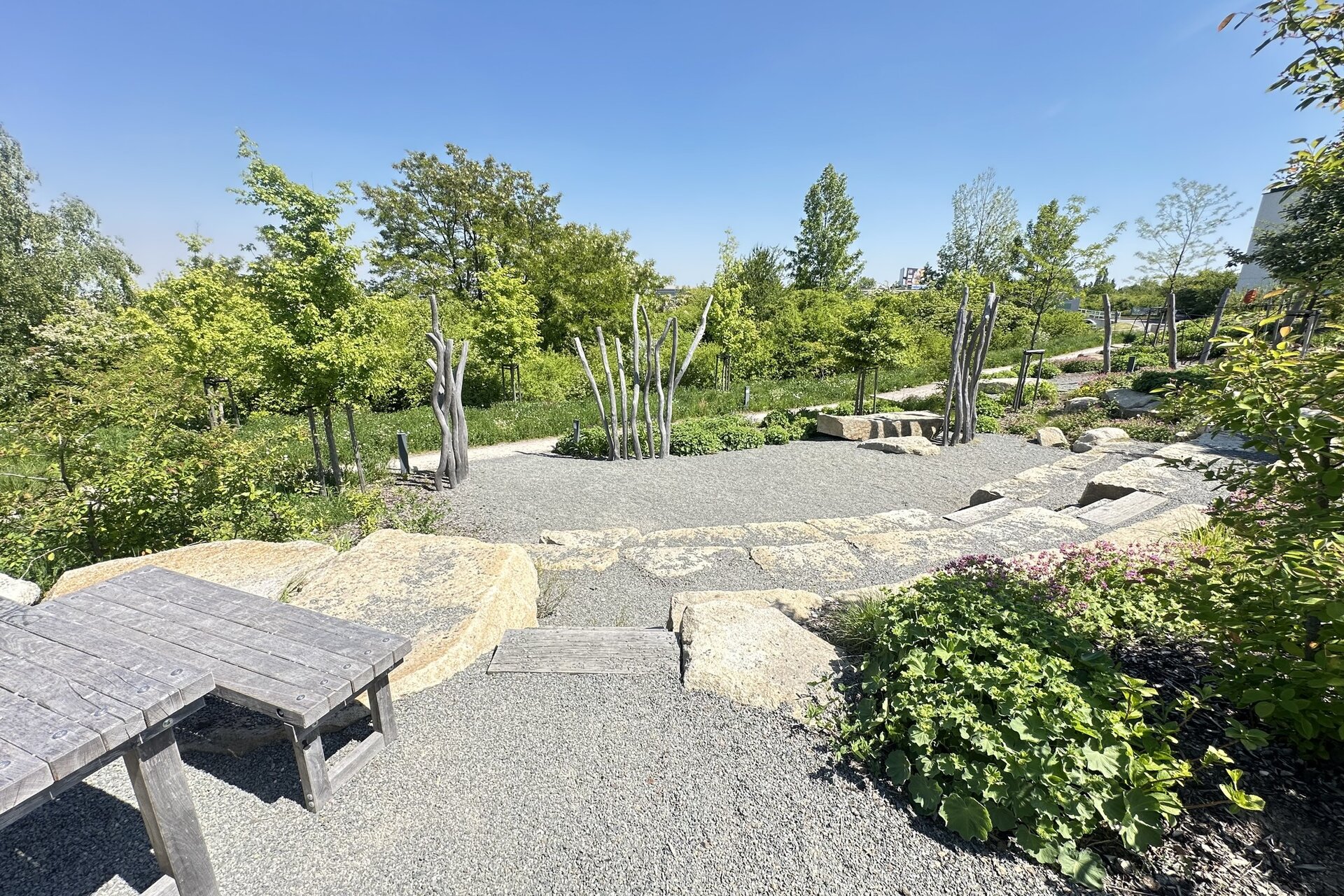 Srdcem Barrandez-Vous je nový rozlehlý park ve vnitrobloku, plný stromů, zeleně a kvetoucích trvalek, s několika relaxačními zónami, přírodním amfiteátrem a herními prvky pro děti.