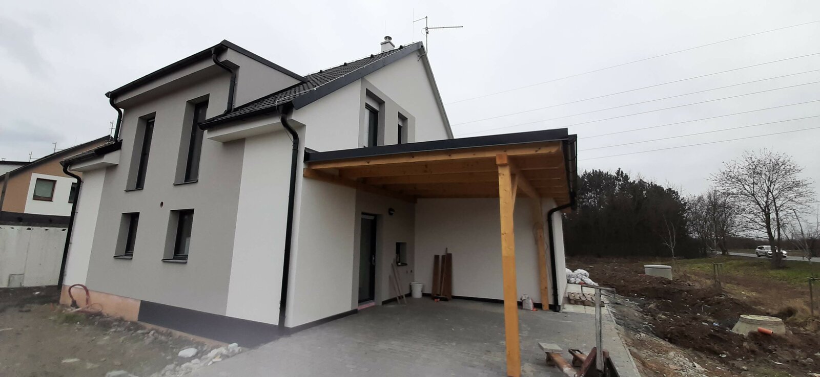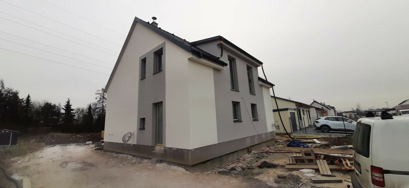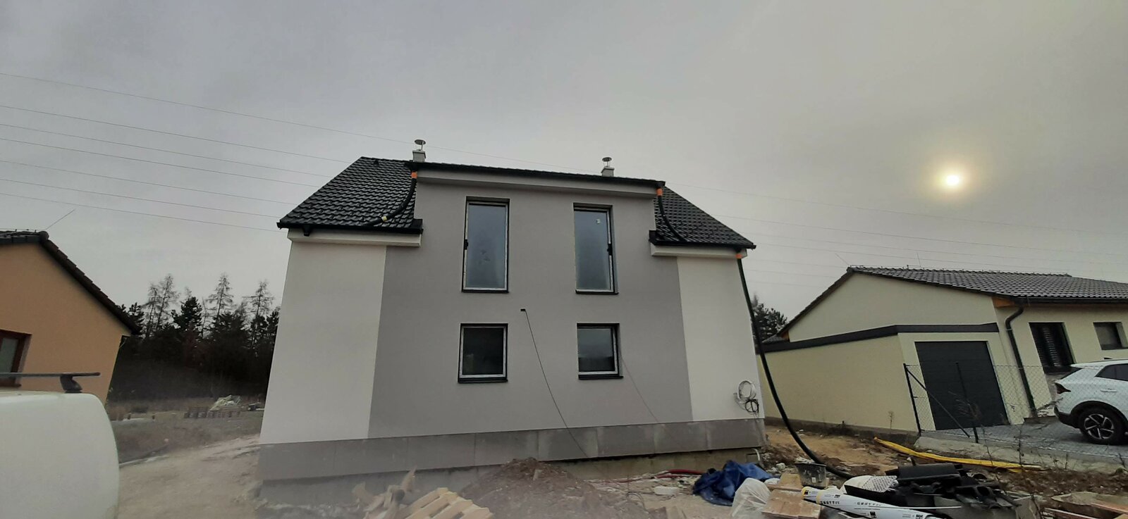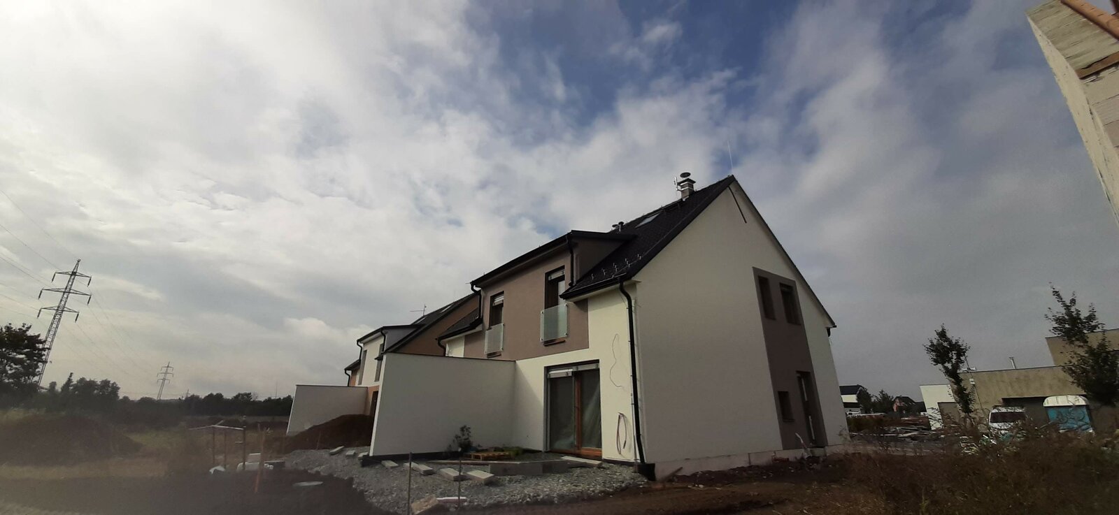 Projekt poslední novostavby v projektu dostupného bydlení o třech místnostech s rozšířením o jednu užitnou místnost o rozměru až 23 m2. Novostavba se nachází v Olomouci - Chomoutově a je orientována do zeleně na jih. Lokalita v blízkosti CHKO, jezer Poděbrady nabízí bydlení v dosahu přírody s velkým pozemkem za cenu bytu. V přízemí se nachází obývací pokoj s kk a sociálním zařízením. Přízemí bylo rozšířeno dle požadavku klienta o jednu místnost o rozměru cca 15 m2. Jedná se o rostoucí modulový dům dle potřeb klienta. V prvním patře se nacházejí dva pokoje a koupelna a v podkroví půda, která byla adaptována na odpočinkovou zónu, a to o rozměrech až 23 m2. Domy svým řešením nabízejí pohodu bydlení, soukromí, nízkonákladové bydlení, cca 3300 Kč v závislosti na en.opatřeních i méně. RD je zhotoven ve zděném provedení. K dispozici je projektant projektu na konzultace ohledně řešení jednotky, elektrikář, se kterým si klient navrhne pozice a řešení světel, zásuvek atd., vodař, omítkář a další s koordinací zást. vedoucího stavby a klienta. Klient si má možnost koordinovat interiéry na zakázku nebo využít své subdodavatele. Řešení jednotky je možné mezonetové v 1NP, kdy pokoj v 1NP je propojen s půdní vestavbou, čímž vznikne prostorné mezonetové uspořádání, kdy ve spodním pokoji může být např.pracovna a v horní spací zóna. Nebo půdní vestavba, jako v tomto případě, byla řešena samostatně, např. pro návštěvy. Novostavba je velice úsporná a je vhodná také na investici - na pronájem - vyšší výtěžnost než byt obdobných parametrů versus nižší náklady. V ukázkové jednotce spotřeba elektro, voda, kanalizace cca 3300 Kč/měsíc v dnešních cenách za energie. Doporučujeme klientům přípravu na tepelné čerpadlo vzduch - vzduch, které dotápěním sníží náklady na vytápění (podlahové, krb), také přípravu na lokální rekuperace v pokojích. Tím dojde do budoucna ke snížení nákladovosti na vytápění na minimum a sníží se tak dopady na životní prostředí a sníží se závislost jednotky na energiíích. Samozřejmostí je příprava na solární panely v půdním prostoru s vyvedením na střechu a trubkováním k rozvaděči.