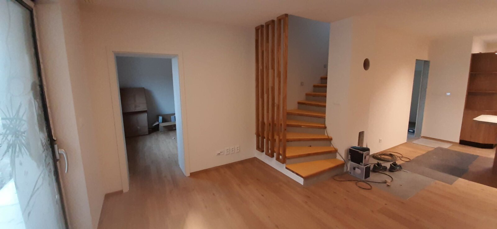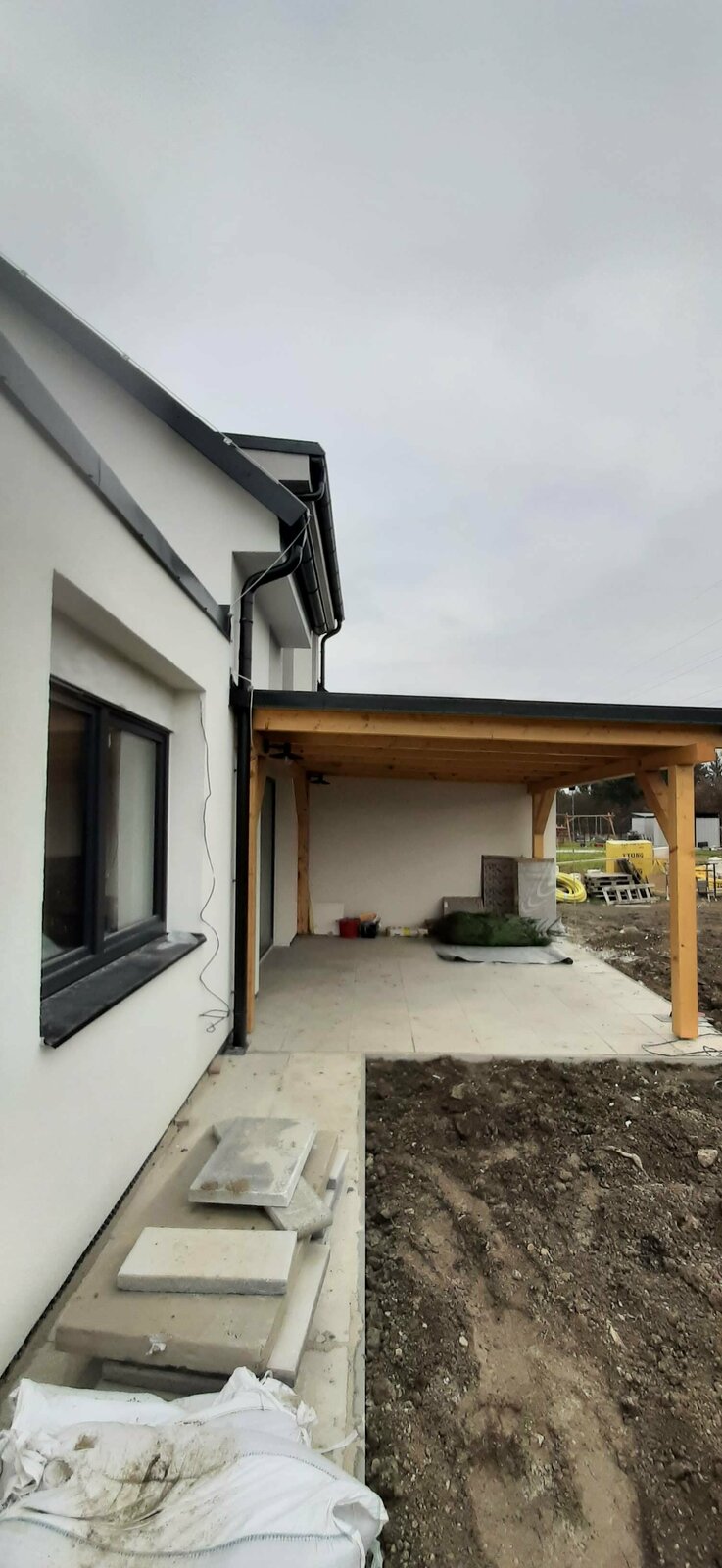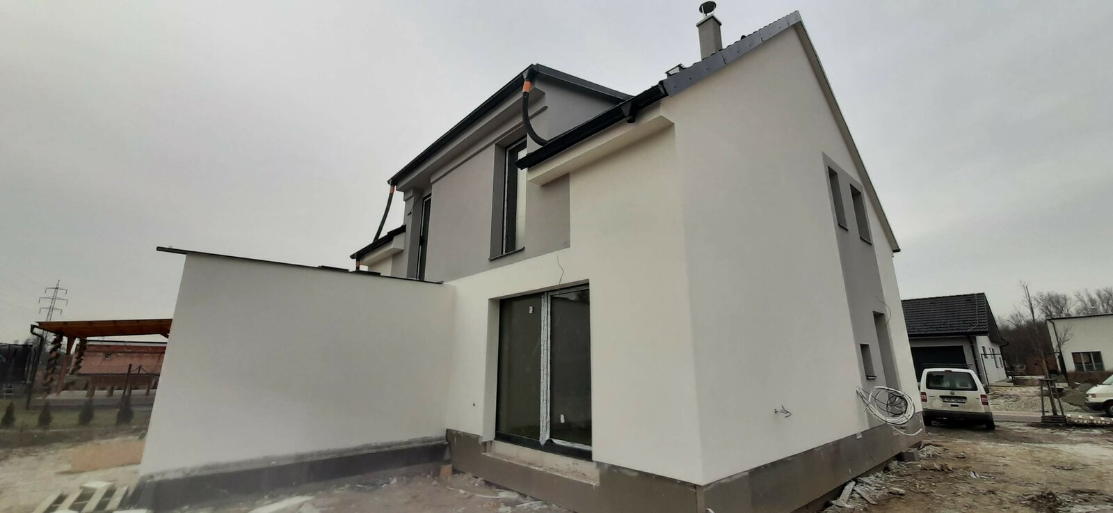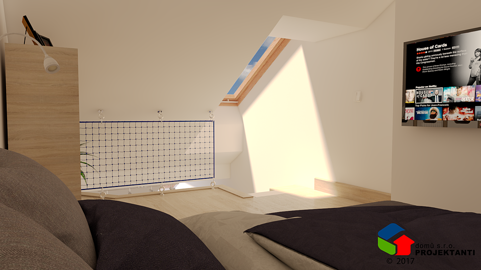 Projekt poslední novostavby v projektu dostupného bydlení o třech místnostech s rozšířením o jednu užitnou místnost o rozměru až 23 m2. Novostavba se nachází v Olomouci - Chomoutově a je orientována do zeleně na jih. Lokalita v blízkosti CHKO, jezer Poděbrady nabízí bydlení v dosahu přírody s velkým pozemkem za cenu bytu. V přízemí se nachází obývací pokoj s kk a sociálním zařízením. Přízemí bylo rozšířeno dle požadavku klienta o jednu místnost o rozměru cca 15 m2. Jedná se o rostoucí modulový dům dle potřeb klienta. V prvním patře se nacházejí dva pokoje a koupelna a v podkroví půda, která byla adaptována na odpočinkovou zónu, a to o rozměrech až 23 m2. Domy svým řešením nabízejí pohodu bydlení, soukromí, nízkonákladové bydlení, cca 3300 Kč v závislosti na en.opatřeních i méně. RD je zhotoven ve zděném provedení. K dispozici je projektant projektu na konzultace ohledně řešení jednotky, elektrikář, se kterým si klient navrhne pozice a řešení světel, zásuvek atd., vodař, omítkář a další s koordinací zást. vedoucího stavby a klienta. Klient si má možnost koordinovat interiéry na zakázku nebo využít své subdodavatele. Řešení jednotky je možné mezonetové v 1NP, kdy pokoj v 1NP je propojen s půdní vestavbou, čímž vznikne prostorné mezonetové uspořádání, kdy ve spodním pokoji může být např.pracovna a v horní spací zóna. Nebo půdní vestavba, jako v tomto případě, byla řešena samostatně, např. pro návštěvy. Novostavba je velice úsporná a je vhodná také na investici - na pronájem - vyšší výtěžnost než byt obdobných parametrů versus nižší náklady. V ukázkové jednotce spotřeba elektro, voda, kanalizace cca 3300 Kč/měsíc v dnešních cenách za energie. Doporučujeme klientům přípravu na tepelné čerpadlo vzduch - vzduch, které dotápěním sníží náklady na vytápění (podlahové, krb), také přípravu na lokální rekuperace v pokojích. Tím dojde do budoucna ke snížení nákladovosti na vytápění na minimum a sníží se tak dopady na životní prostředí a sníží se závislost jednotky na energiíích. Samozřejmostí je příprava na solární panely v půdním prostoru s vyvedením na střechu a trubkováním k rozvaděči.