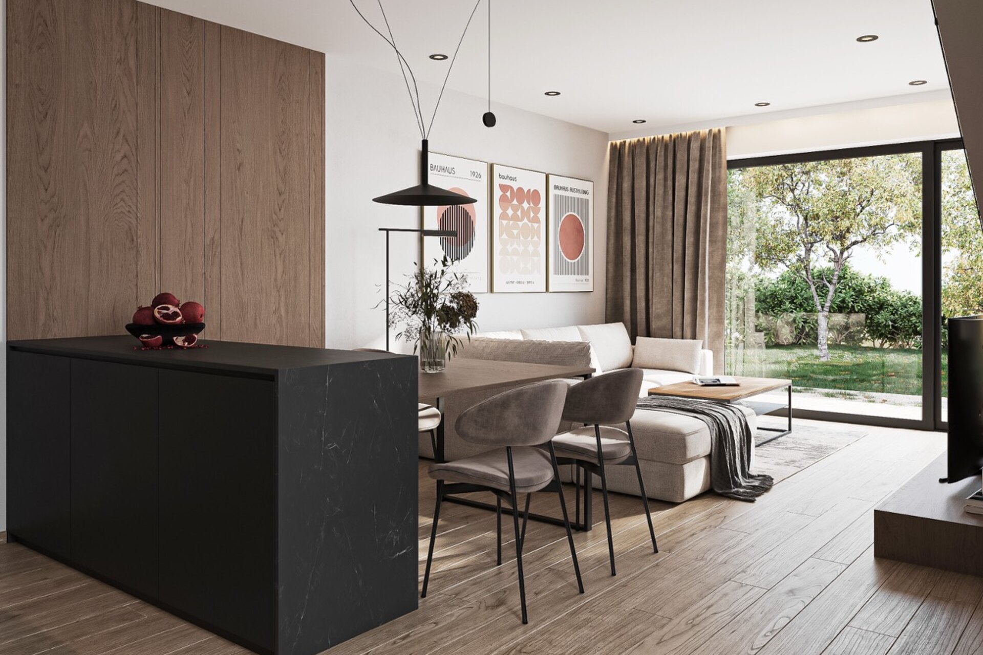 Každý dům má svou vlastní zahradu s krytou terasou, která poskytuje dokonalé zázemí pro odpočinek i společné chvíle s rodinou a přáteli. Zahrada je ideálním místem pro relaxaci na čerstvém vzduchu, kde si můžete vychutnat ranní kávu, přečíst si oblíbenou knihu nebo jen v klidu naslouchat zvukům přírody.
