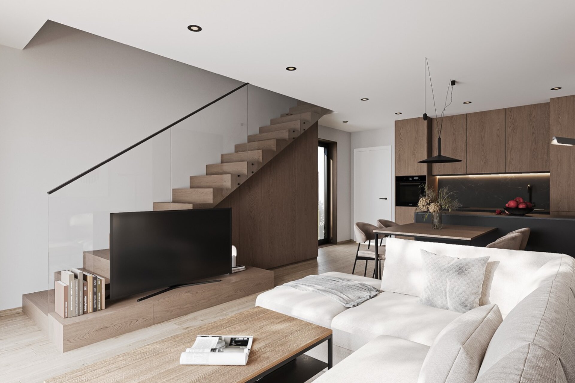 Domy jsou postaveny s důrazem na použití kvalitních materiálů, které splňují přísné certifikační standardy. Každý detail je pečlivě promyšlen, včetně zábradlí z bezpečnostního skla, které poskytuje bezpečnost a moderní vzhled.