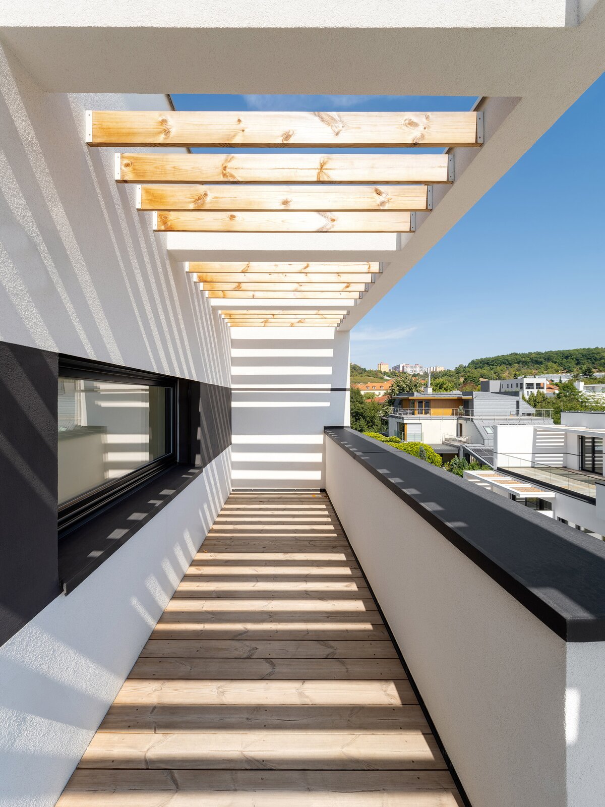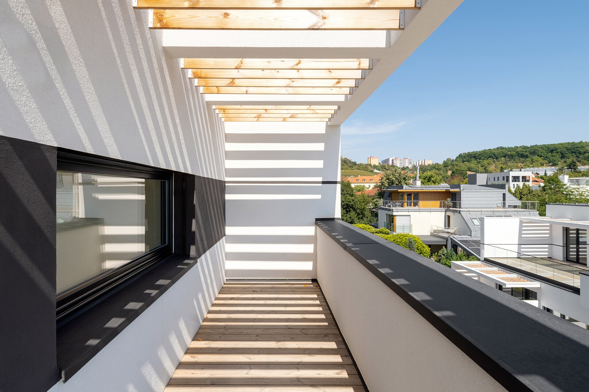 Zdravé a komfortní vnitřní prostředí zajišťuje centrální řízené větrání s rekuperací tepla, díky tomu je v bytě neustále čerstvý vzduch a eliminace plísní a prachu. Tepelný komfort, zejména v létě, zajistí inovativní systém chlazení betonovými stropy a exteriérové žaluzie s lamelami na terasách. Okna s izolačními trojskly, konstrukce obálky, zateplení i to, že není nutné pravidelně větrat okny, zajišťuje akustickou pohodu. Dostatek světla propouští velké prosklené plochy a promyšlený návrh dispozic ku světovým stranám. Unikátní systém aktivace betonového jádra přináší revoluční způsob chlazení a vytápění – voda cirkuluje v konstrukci stropu, čímž vytváří ideální teplotu bez hluku, průvanu či viditelných prvků. Komfort doplňuje chytrá domácnost Loxone a komunitní zahrada s pergolou, dětskými prvky a bylinkovými záhony.