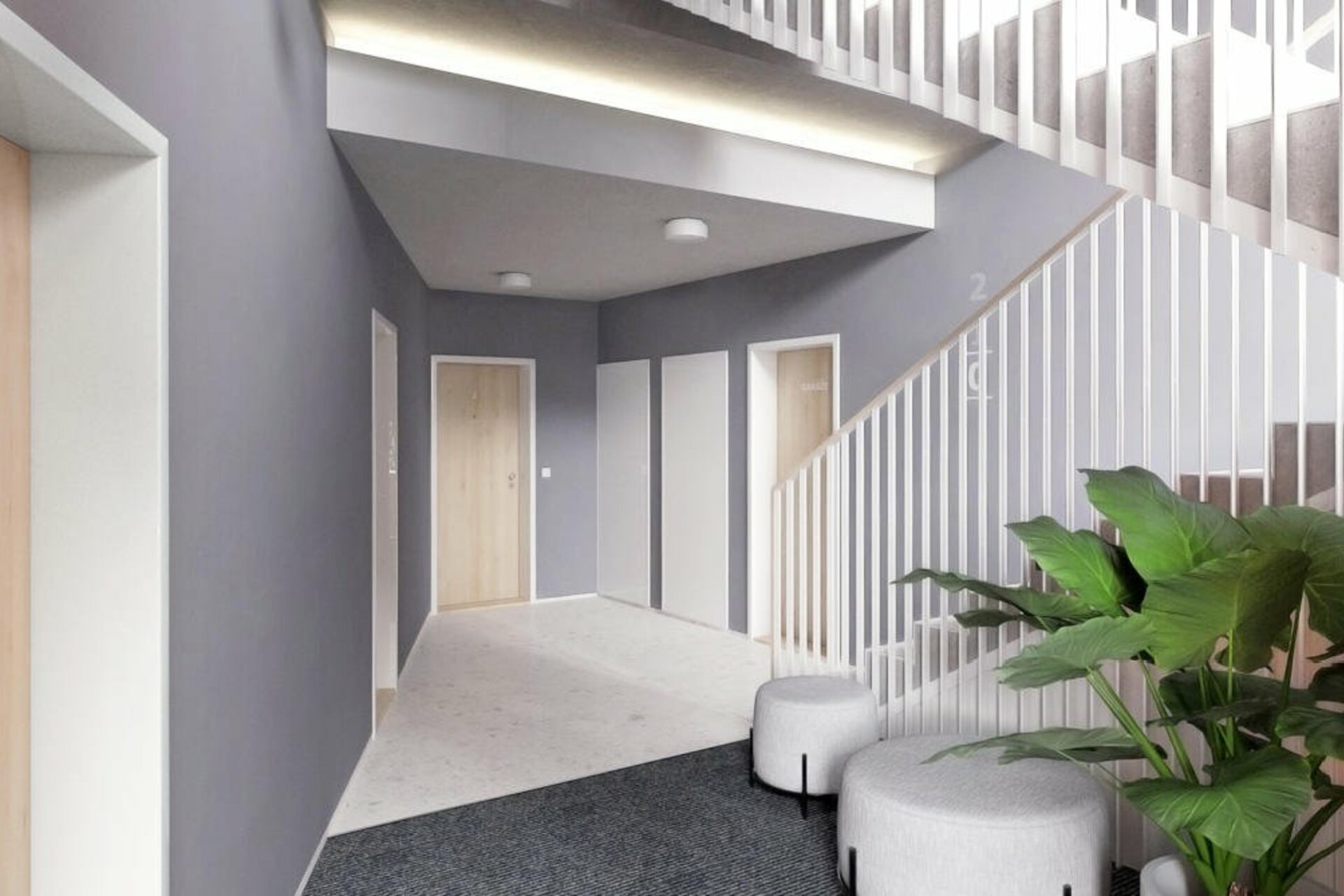 Ke každému bytu je možné dokoupit parkovací stání a sklepní kóji v podzemních garážích.