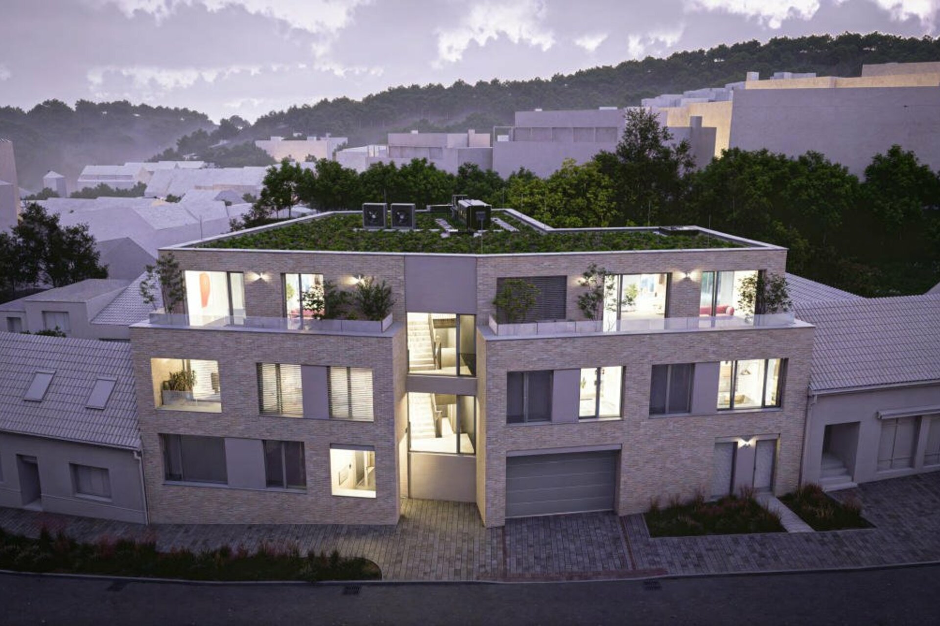 Do bytů proudí neustále čerstvý vzduch díky řízenému hygienickému větrání, které v domě obstarává inteligentní systém firmy Lindab s rekuperací tepla a úpravou teploty vzduchu. Systém v létě zajišťuje i chlazení přiváděného vzduchu (alternativa ke klimatizaci).