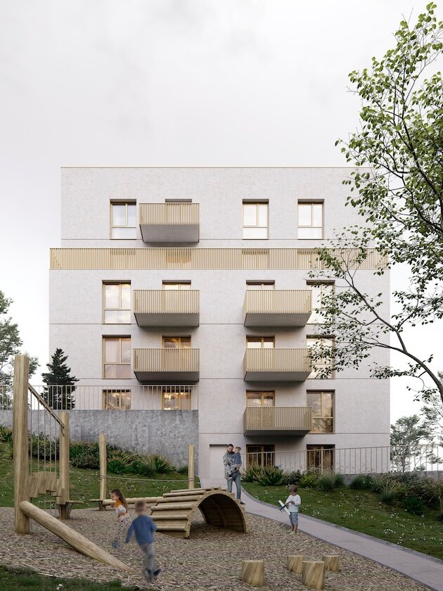 Přinášíme dostupné a komfortní bydlení v samotném srdci republiky. Pro mladé lidi, rodiny, ale i seniory. Pětipodlažní dům s vlastním parkováním a s vysokým standardem provedení s elegantní architekturou, který bude okrasným prvkem pro lokalitu. Minimalistický dům s osobitými proporcemi a důvtipem. Pracujeme s neočekávaně jemnou architekturou funkčních prvků objektu (balkony, vstupy, okna). Nekomplikujeme stavbu ani život obyvatel města a přitom tvoříme domu charakteristický a důstojný vzhled.