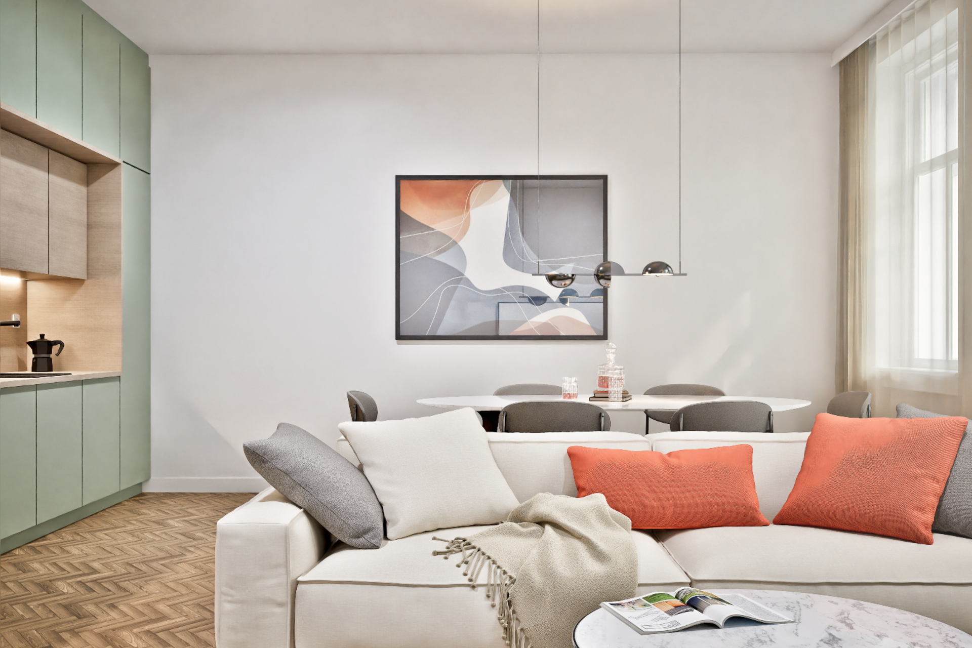 Byty jsou navrženy s maximální péčí a precizností, aby poskytly nejen komfortní a moderní bydlení, ale také jedinečný zážitek z atmosféry Karlína – čtvrti, která patří k nejdynamičtěji se rozvíjejícím v Praze.