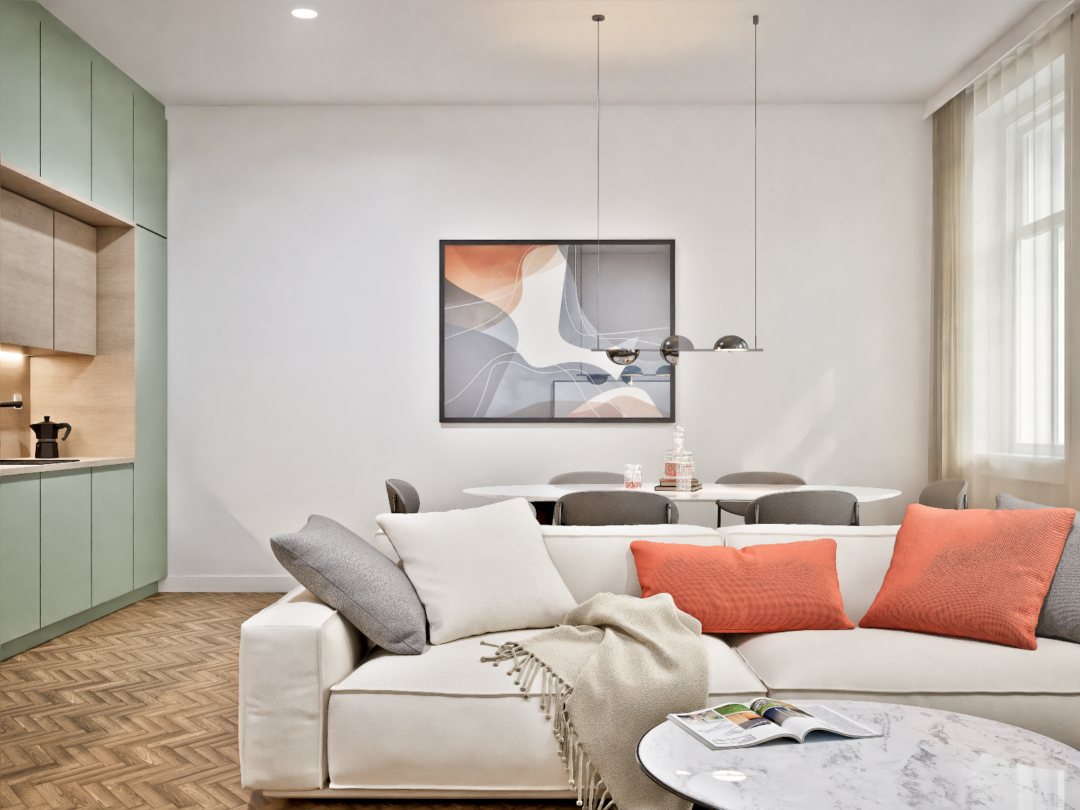 Byty jsou navrženy s maximální péčí a precizností, aby poskytly nejen komfortní a moderní bydlení, ale také jedinečný zážitek z atmosféry Karlína – čtvrti, která patří k nejdynamičtěji se rozvíjejícím v Praze.