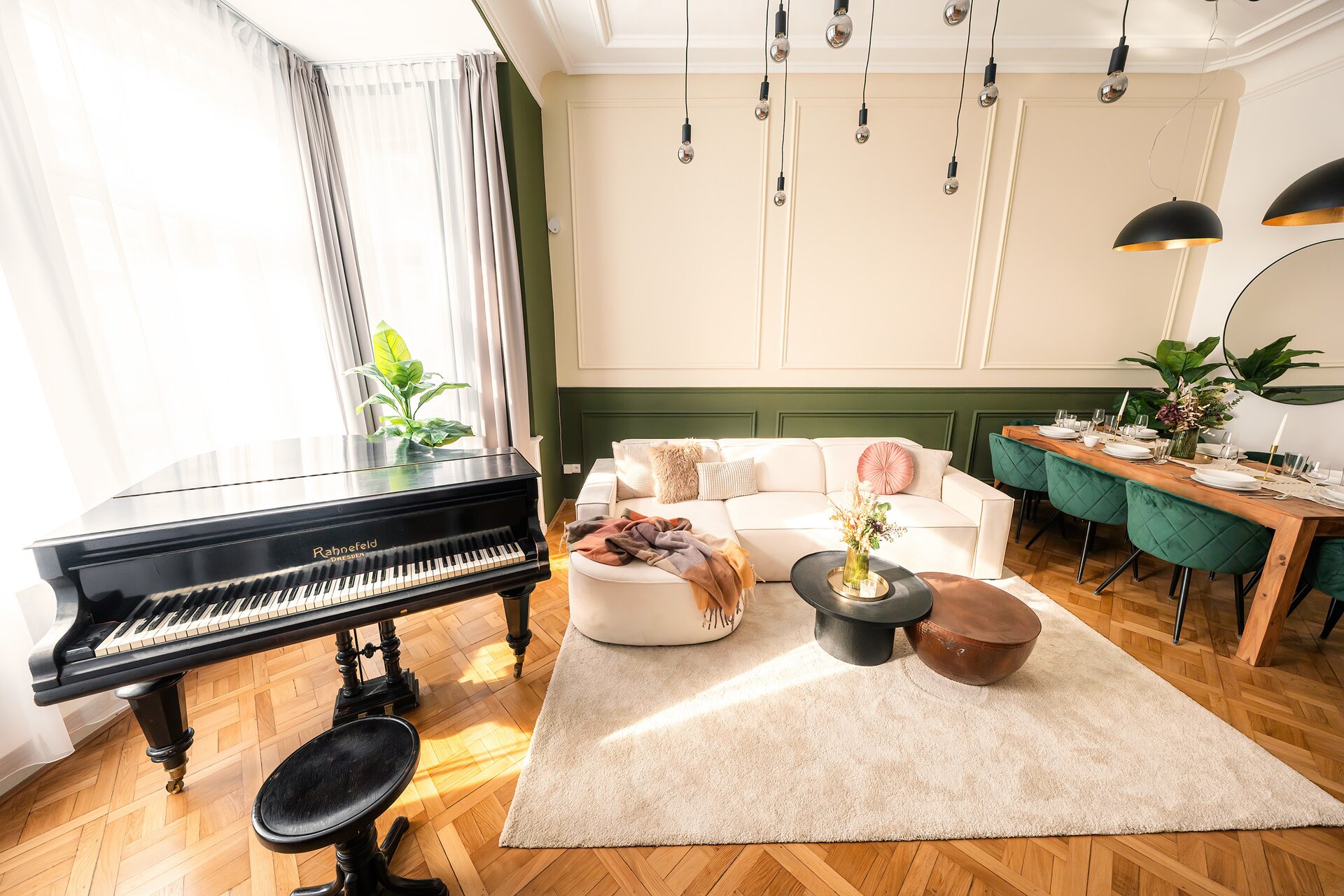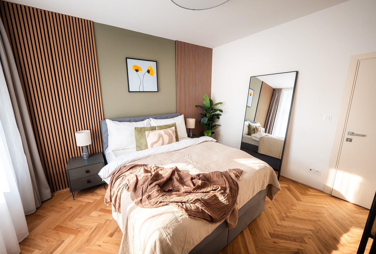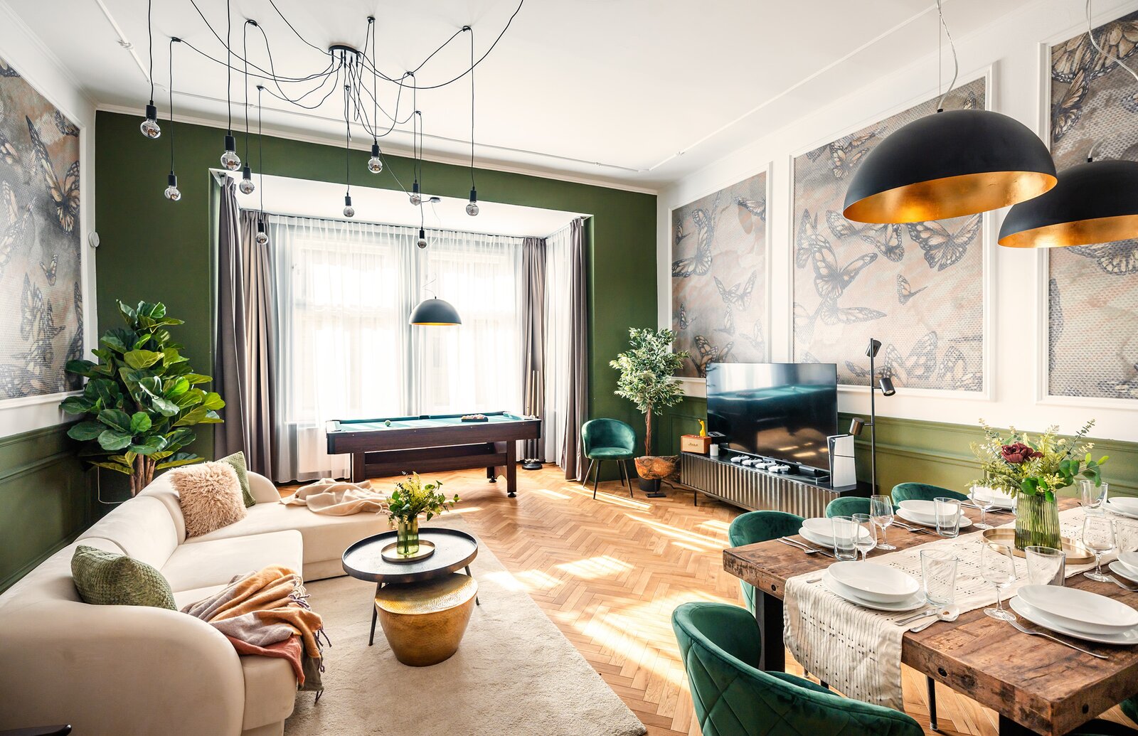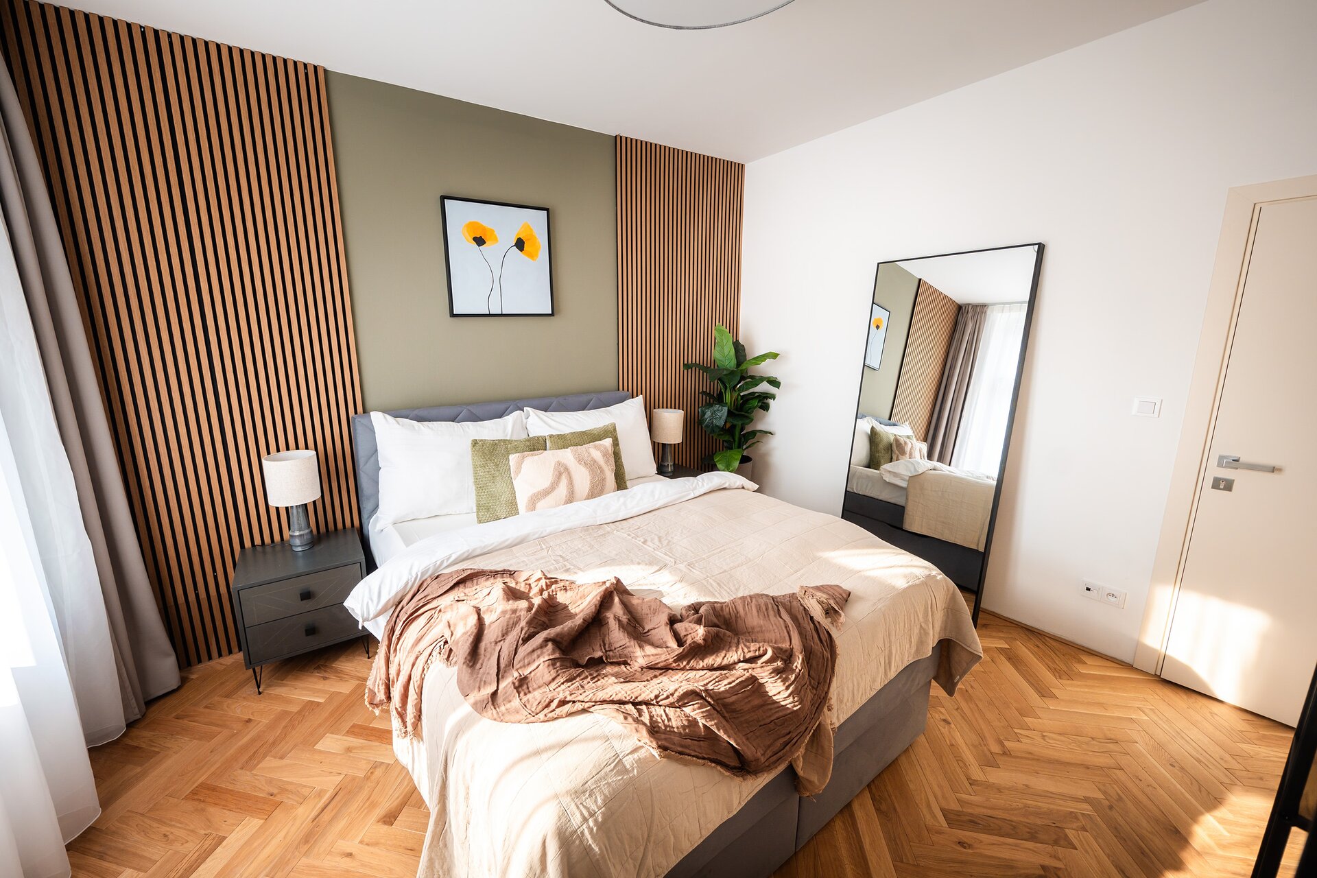 Každý byt je navržen tak, aby hostům poskytl nejen pohodlné a plně vybavené zázemí, ale i autentický zážitek z pobytu v Praze. Díky poloze v bezprostřední blízkosti Václavského náměstí je vše, co centrum nabízí – kultura, restaurace, kavárny i noční život – doslova na dosah ruky.