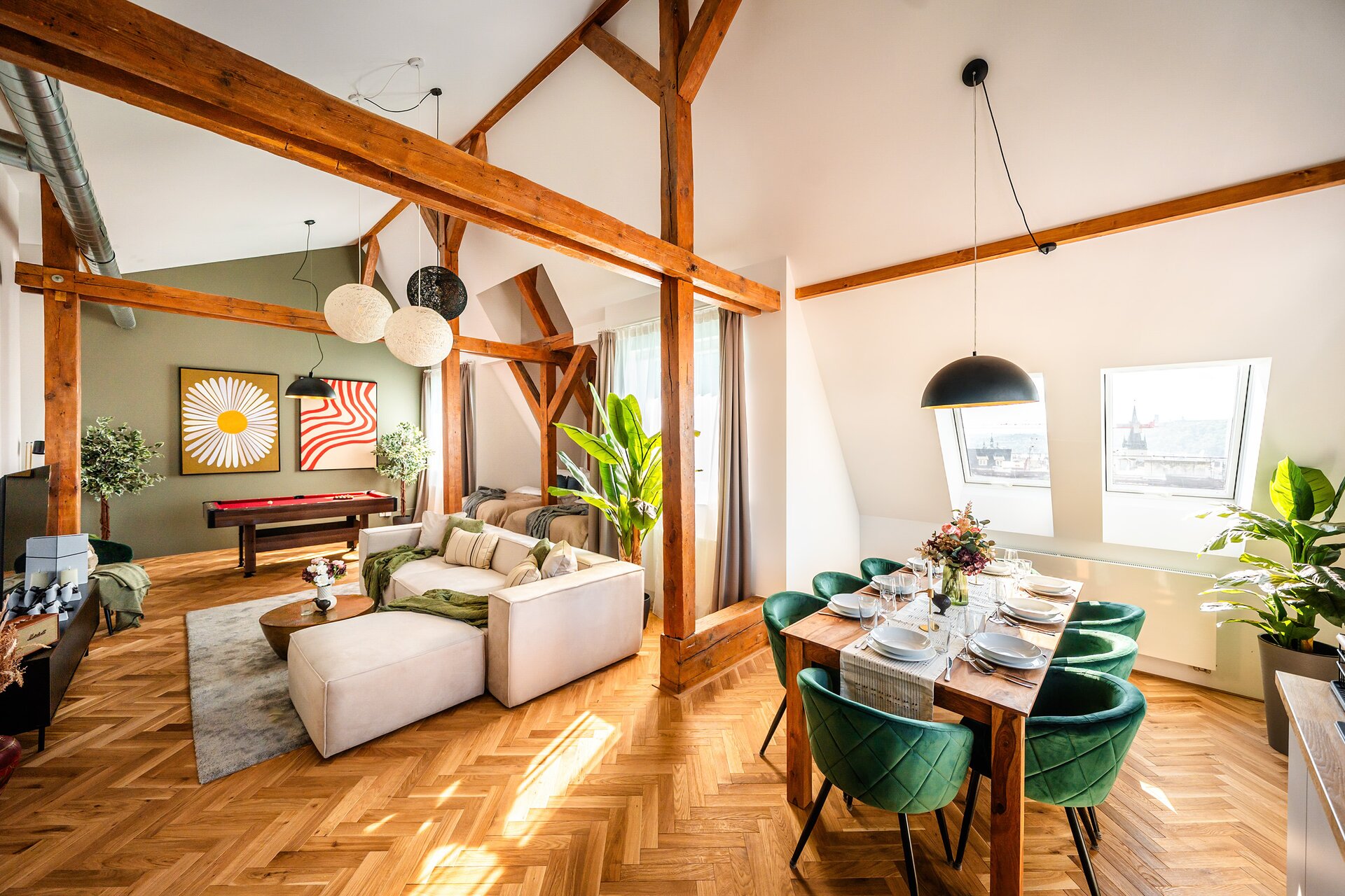 Dům nabízí celkem 7 exkluzivních bytových jednotek a stylovou restauraci v přízemí, čímž vytváří jedinečné prostředí pro ubytování i gastronomii v centru města.