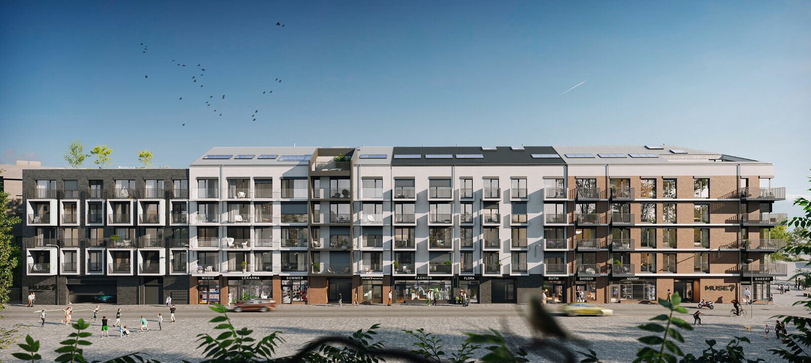 MUSE7 je nový rezidenční projekt, který vzniká v jedné z nejdynamičtějších a nejkreativnějších lokalit Prahy 7, konkrétně v inspirativních Holešovicích. Tento unikátní projekt, jehož název vychází ze slova "múza", klade důraz na propojení s místem i lidmi, kteří zde budou žít. MUSE7 nabídne 148 moderních bytů v různých dispozicích od 1+kk až po 3+kk, přičemž některé z nich budou mít loftový charakter či budou situovány v posledních patrech s výhledem na holešovickou Stromovku a také panorama Prahy. Tento projekt je součástí širší urbanistické regenerace oblasti Prahy 7 Bubny-Zátory, která přináší nový život do této dynamicky rozvíjející se městské čtvrti.