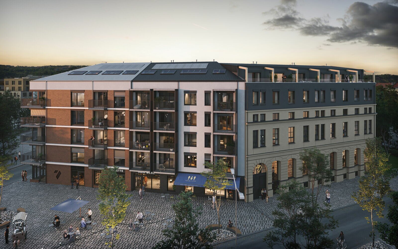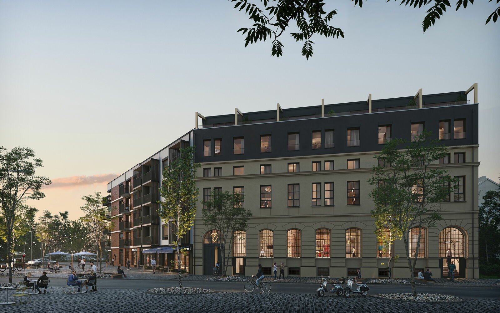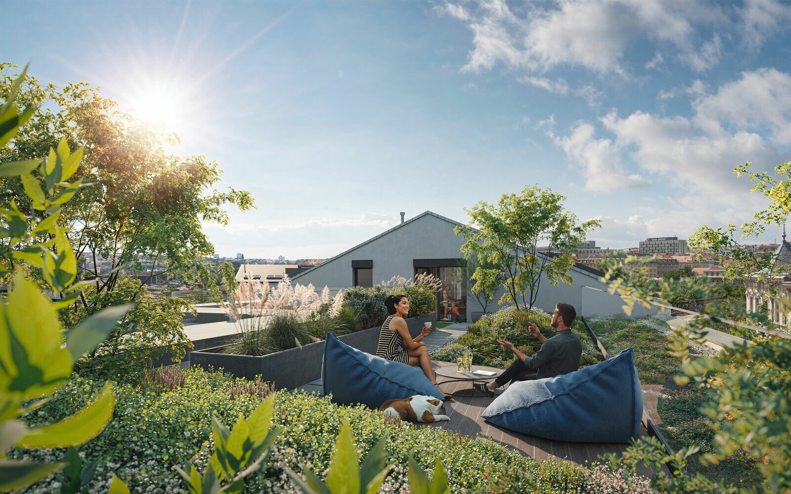 Klidný vnitroblok v našem bytovém projektu nabízí ideální prostor pro relaxaci a odpočinek. Toto privátní atrium, určené výhradně pro rezidenty, je orientováno jihovýchodním směrem, což zajišťuje dostatek slunečního světla po celý den. Vzrostlé stromy a zeleň s výsadbou vytvářejí příjemné prostředí, kde si můžete užívat chvíle klidu nebo sledovat děti hrající si na malém hřišti. K atmosféře přispěje také umělecká instalace s industriálním podtextem, která vnáší do prostoru jedinečný charakter. Tento vnitroblok se tak stává nejen místem pro odpočinek, ale i inspirativním prostorem, kde můžete načerpat novou energii přímo uprostřed vašeho domova.
