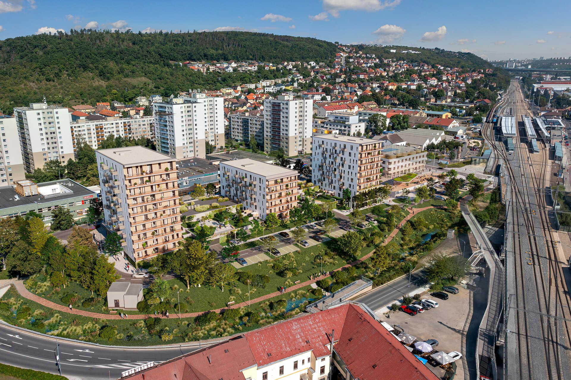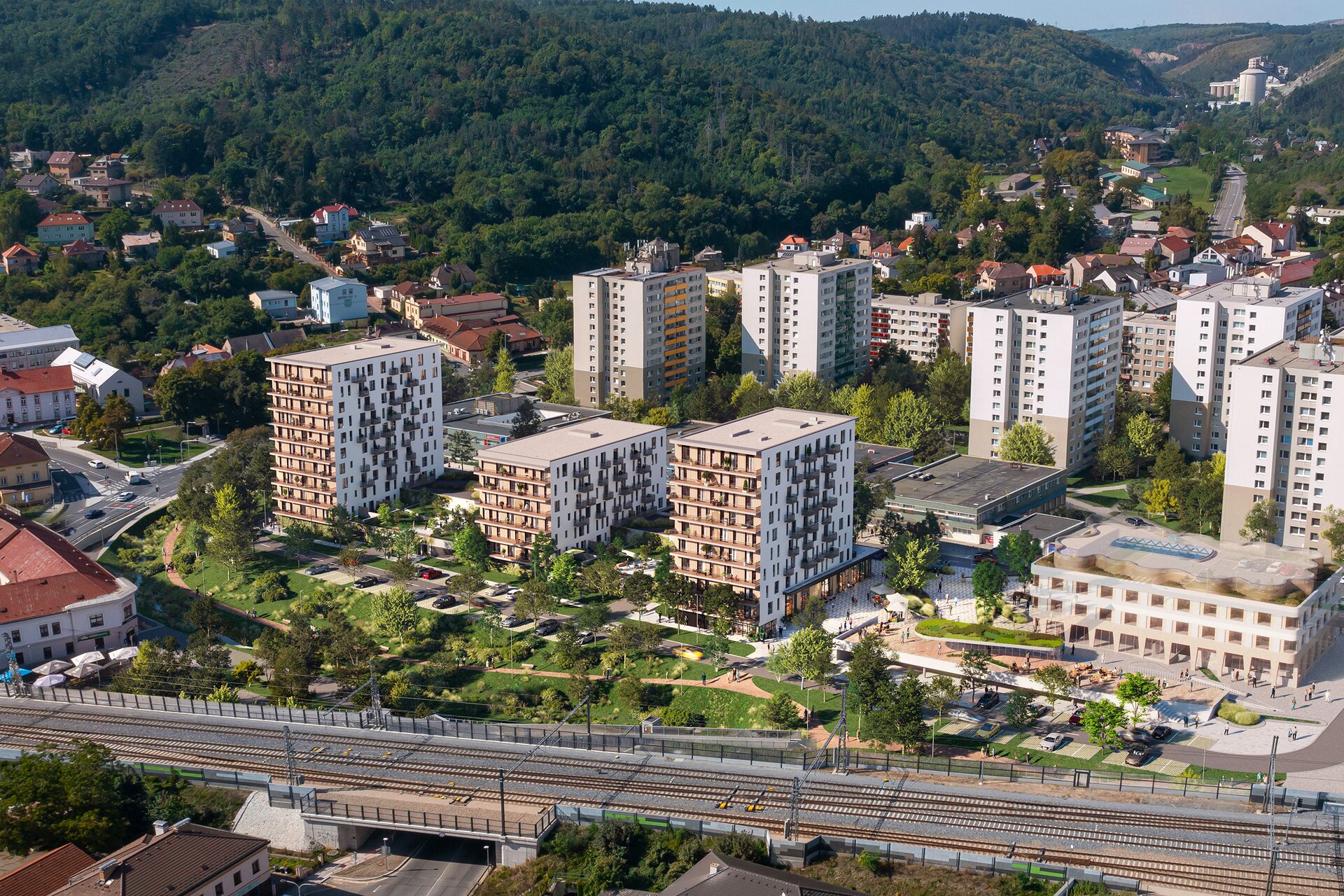 TRIO Radotín je součástí rozsáhlejší urbanistické proměny, v jejímž sousedství vyroste také nová radnice v jednotném architektonickém stylu. Projekt se tak stává přirozeným centrem života Radotína a posiluje jeho identitu jako moderní městské části, která spojuje dostupnost všech služeb s blízkostí přírody.