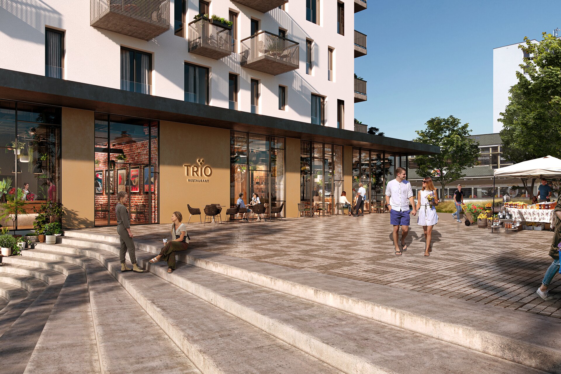 TRIO Radotín přináší novou tvář do centra městské části Praha – Radotín. Tři moderní bytové domy propojené jednotným architektonickým stylem vytvářejí harmonický celek, který nabízí více než dvě stě bytů v širokém rozpětí dispozic od praktických 1+kk až po prostorné rodinné 5+kk. Součástí projektu je i parter s obchody a službami, díky kterému se lokalita promění v živé městské centrum, kde se přirozeně setkává bydlení s každodenními potřebami obyvatel.