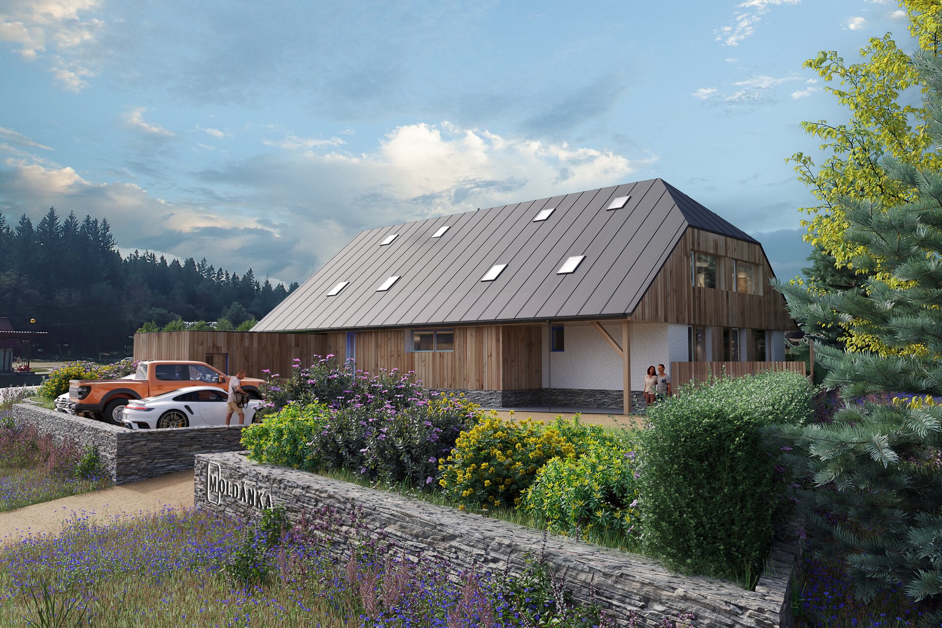 Výjimečný horský chalet, který svým tvarem a proporcemi odkazuje na tradiční šumavské stavby. Oproti nim však svým obyvatelům nabízí současný standard bydlení, v kombinaci s velmi nízkými provozními náklady. Tepelné čerpadlo systému země-voda, zajišťuje maximální tepelný komfort v každém ročním období. Pečlivě vybrané materiály a řešení, citlivá architektura a jemný design, moderní technologie. Esence chalupaření 21. století. To vše se snoubí na Moldánce.