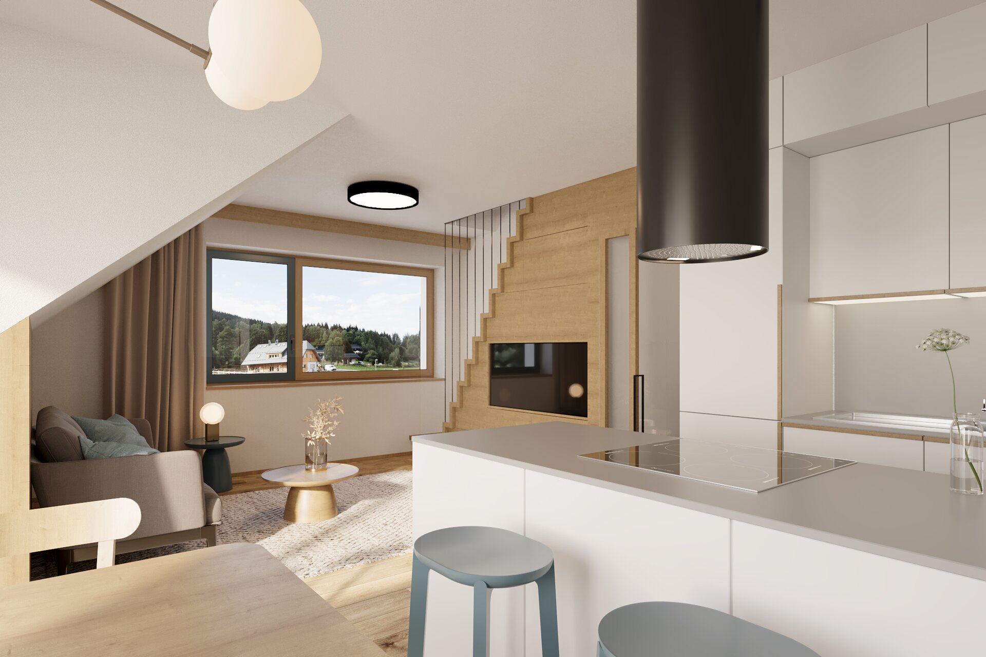 Dokonalé soukromí uprostřed okouzlující přírody. Kombinace, která z Moldánky činí opravdu výjimečný projekt. Dům má pouze sedm apartmánů, rozdělených do dvou podlaží. Přízemní apartmány disponují vlastní terasou a uzavřenou předzahrádkou, apartmány v podkroví mají mezonetové půdní prostory. Všechny spojují důmyslně navržené vnitřní prostory, poskytující mnoho zákoutí pro klidný a nerušený odpočinek.