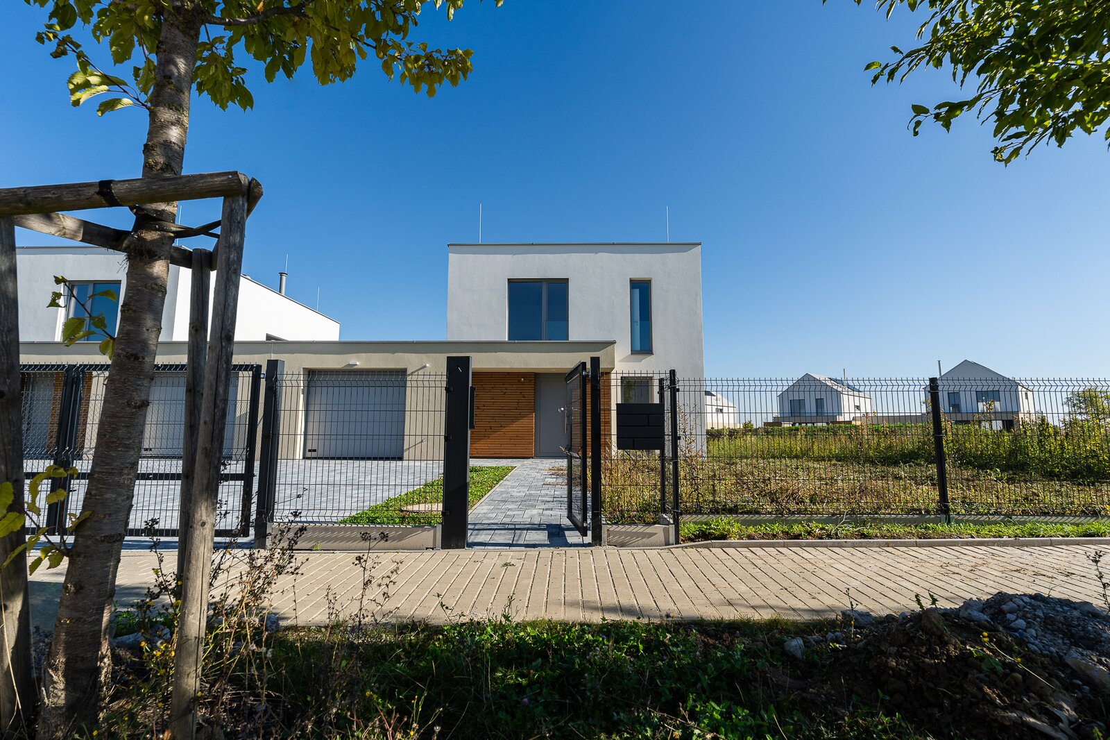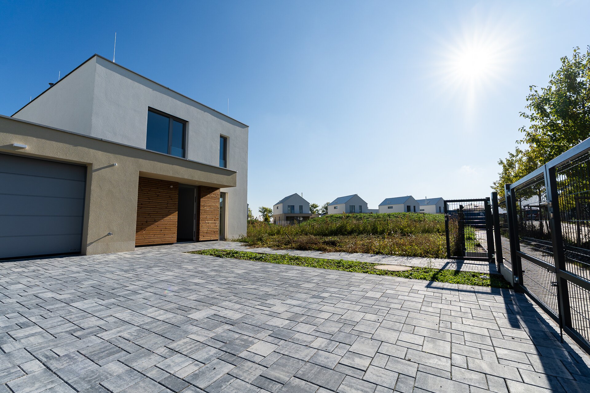 Zahrady velké až 1 124 m² jsou dost prostorné na to, aby se na ně vešel bazén, venkovní posezení, dětský hrací koutek i ovocné stromy. Parkovací stání pro další dva automobily oceníte, když nebude chtít zajíždět do garáže nebo za vámi přijede návštava.