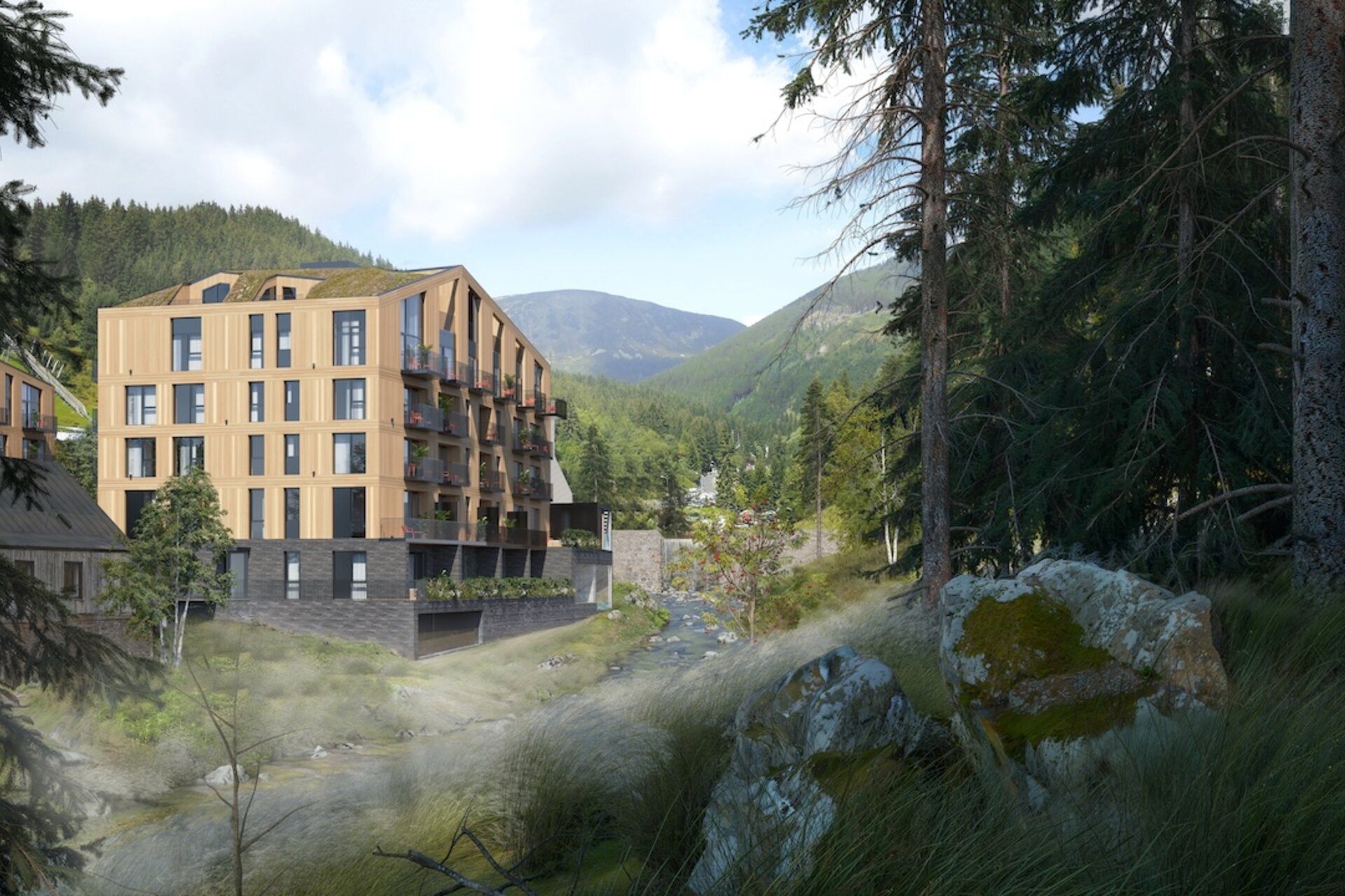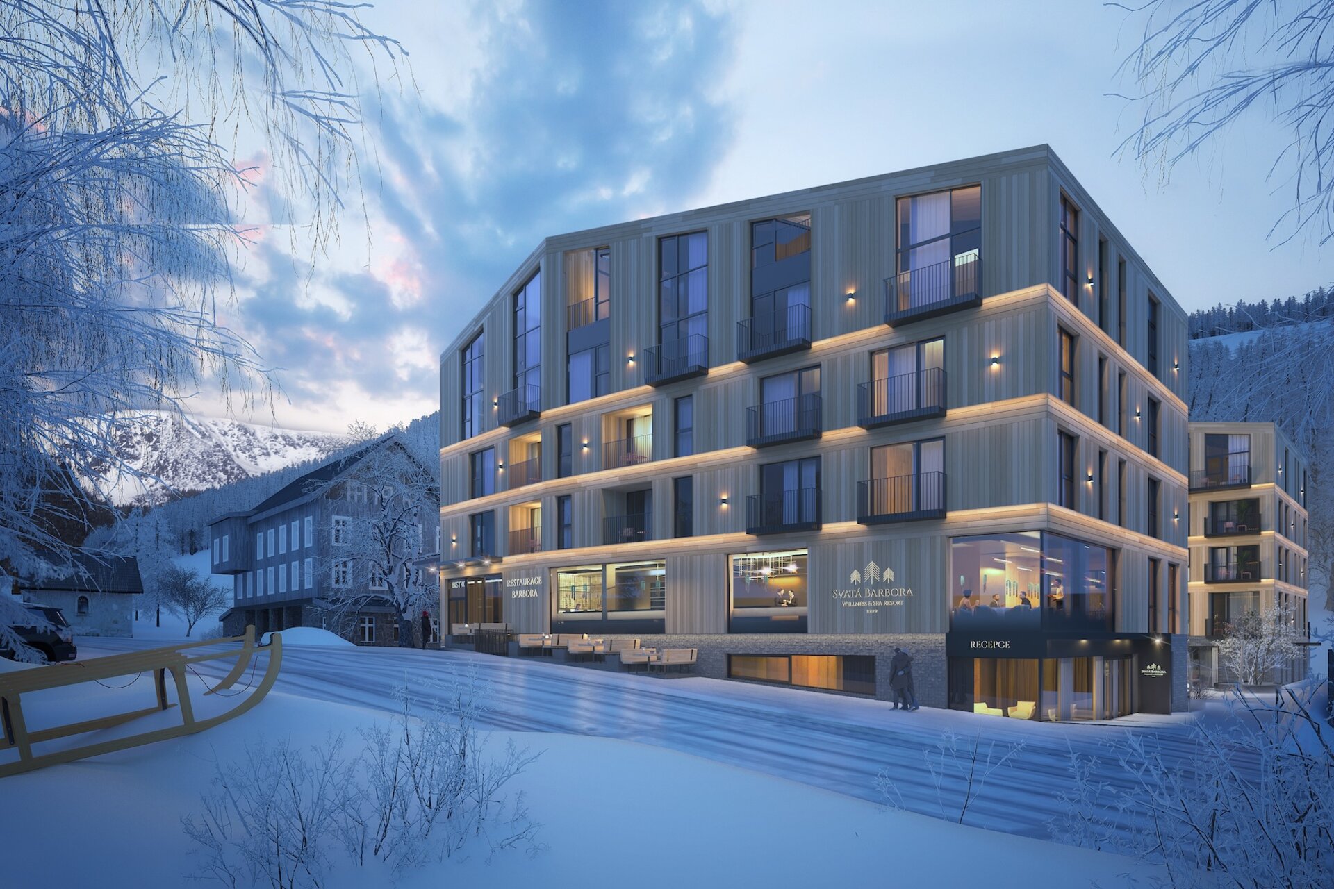 V srdci Krkonoš roste nový komplex tří budov, jehož dominantou bude Krkonošské wellness centrum o rozloze více než 2100 metrů čtverečních. Resort Svatá Barbora, navržený renomovaným architektonickým studiem OVA s interiéry od studia Formafatal, bude tvořen dvěma dřevem obloženými objekty a designovým domem Cubus.